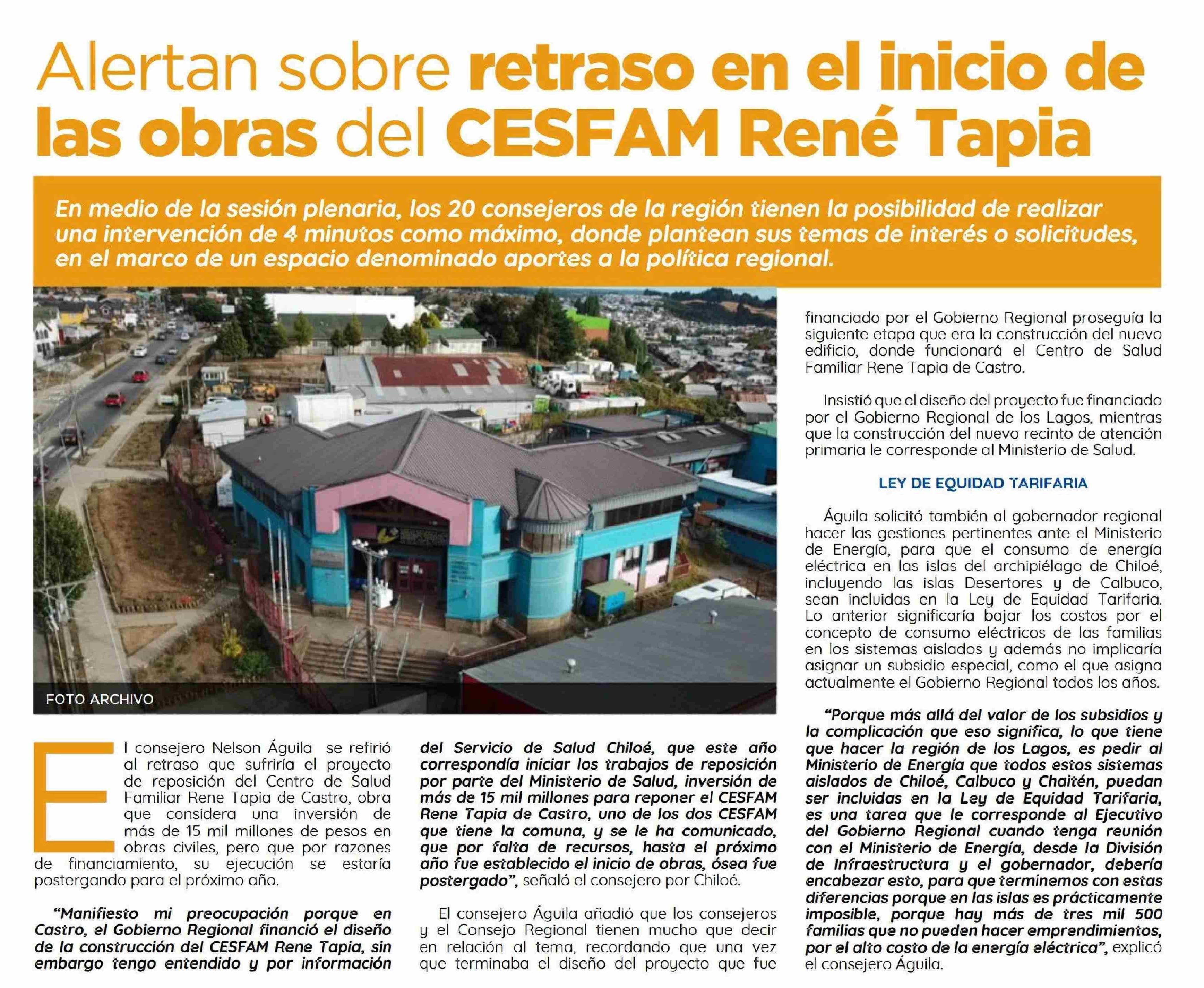 Alertan sobre retraso en el inicio de las obras del CESFAM René Tapia