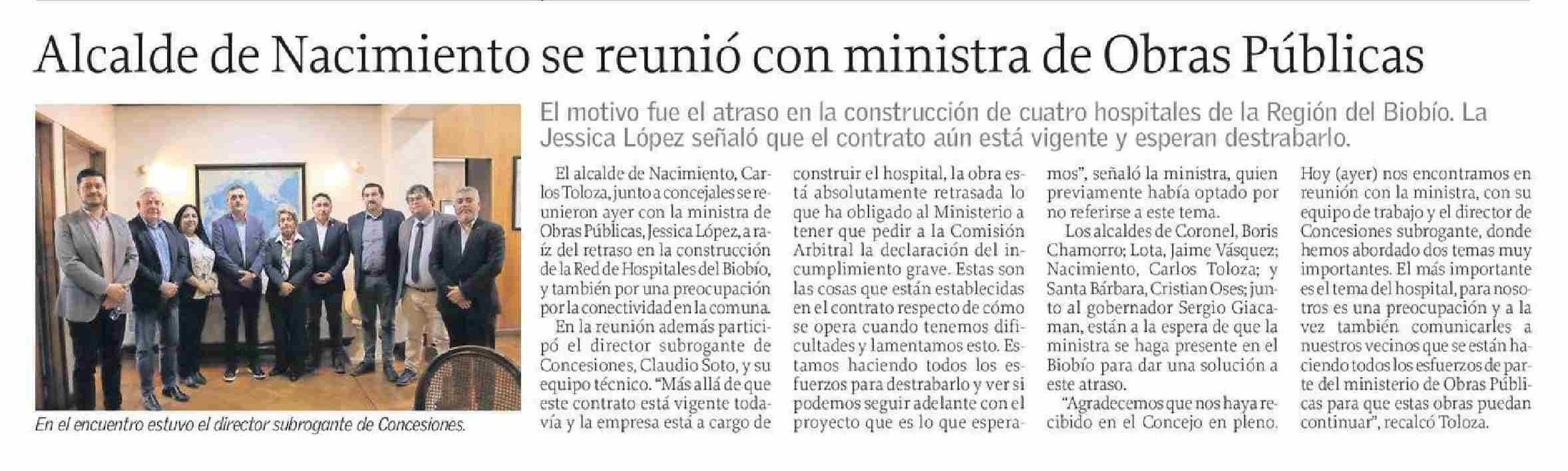 Alcalde de Nacimiento se reunió con ministra de Obras Públicas