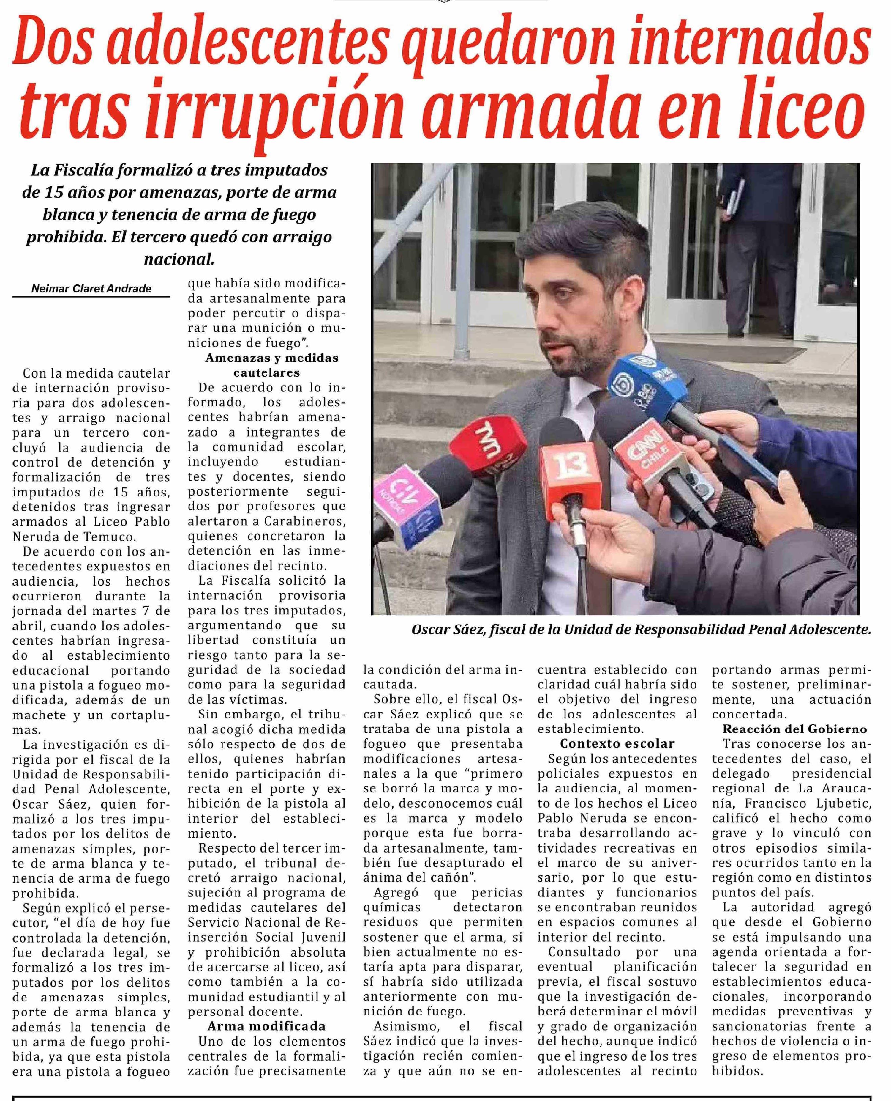Dos adolescentes quedaron internados tras irrupción armada en liceo