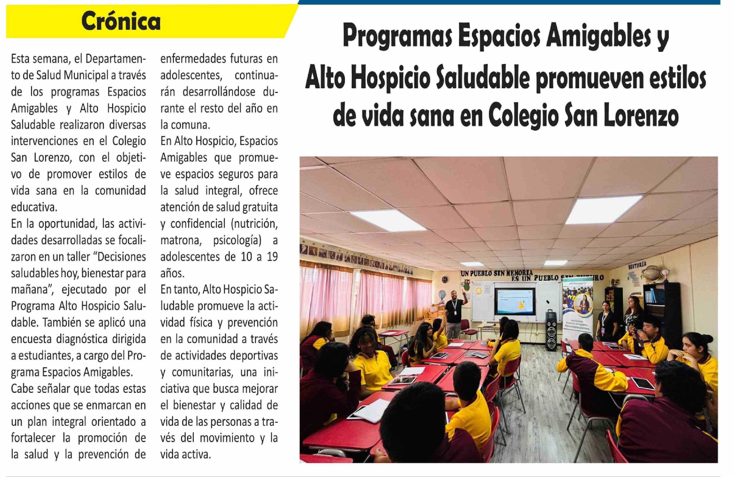 Programas Espacios Amigables y Alto Hospicio Saludable promueven estilos de vida sana en Colegio San Lorenzo