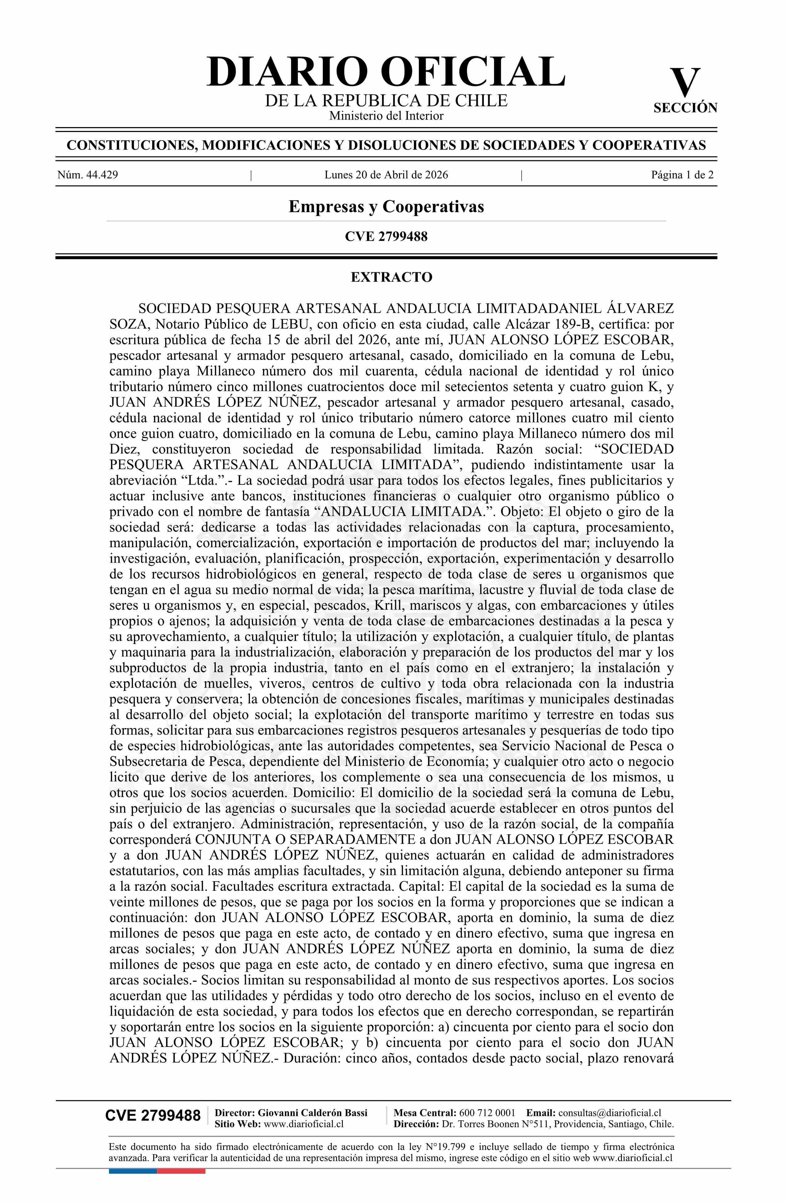 SOCIEDAD PESQUERA ARTESANAL ANDALUCIA LIMITADA