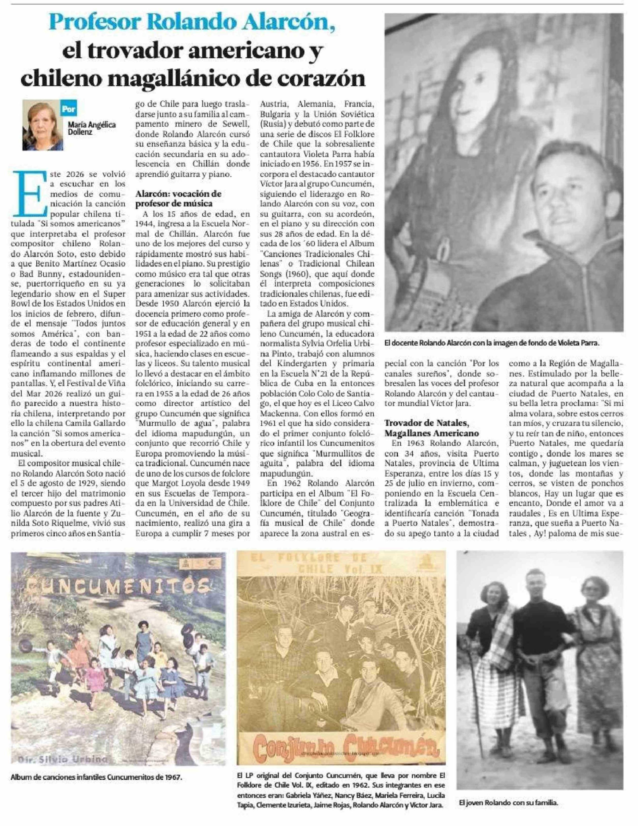 Profesor Rolando Alarcón, el trovador americano y chileno magallánico de corazón