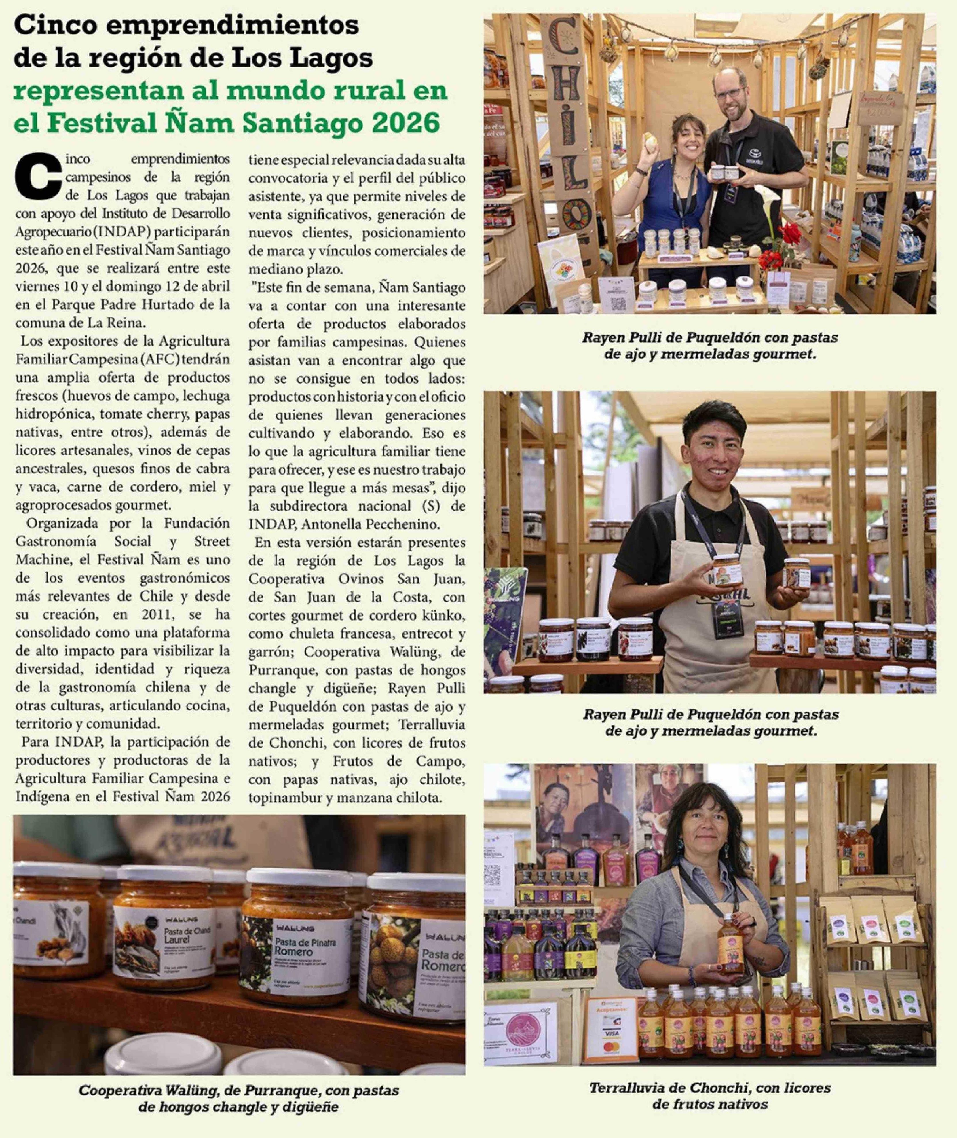 Cinco emprendimientos de la región de Los Lagos representan al mundo rural en el Festival Ñam Santiago 2026