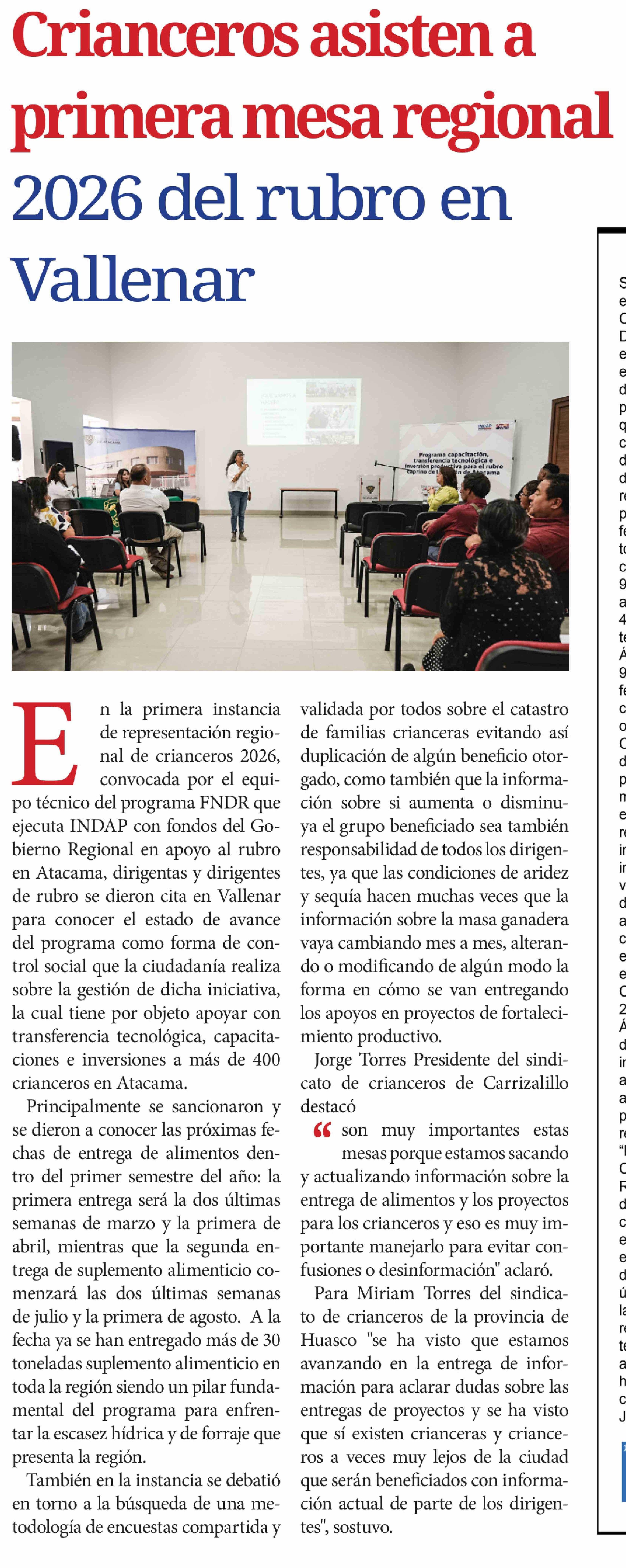 Crianceros asisten a primera mesa regional 2026 del rubro en Vallenar