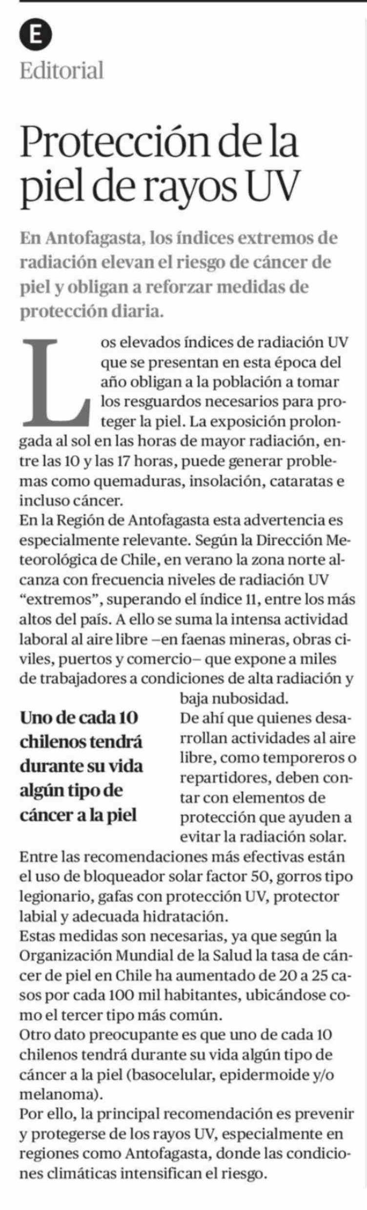 Editorial: Protección de la piel de rayos UV