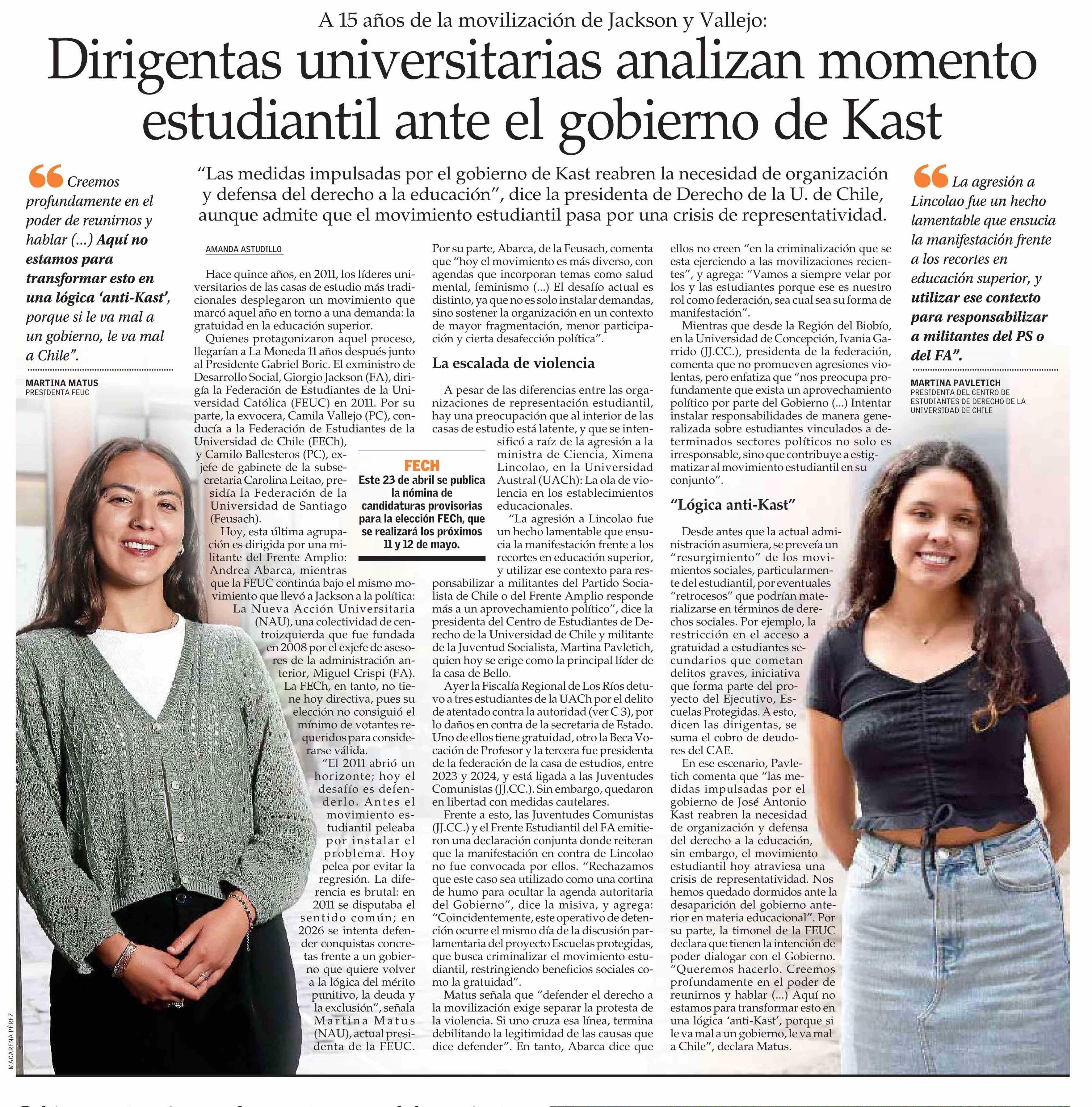 Título: Dirigentas universitarias analizan momento estudiantil ante el gobierno de Kast