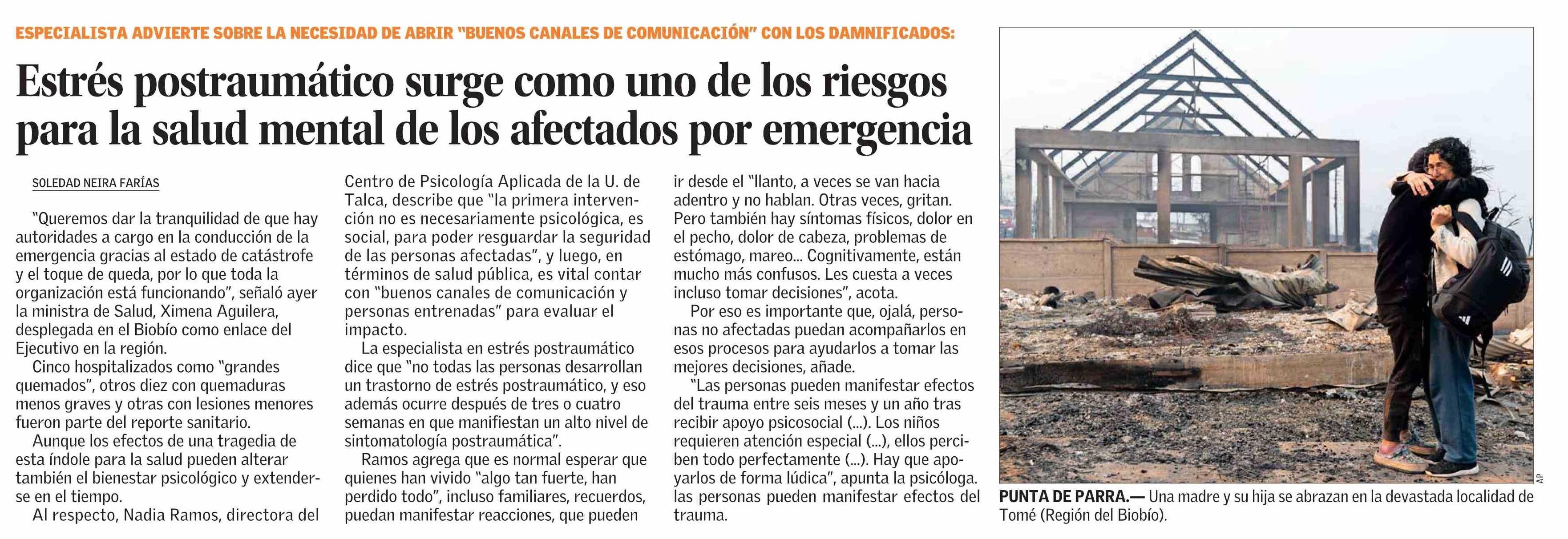 Estrés postraumático surge como uno de los riesgos para la salud mental de los afectados por emergencia