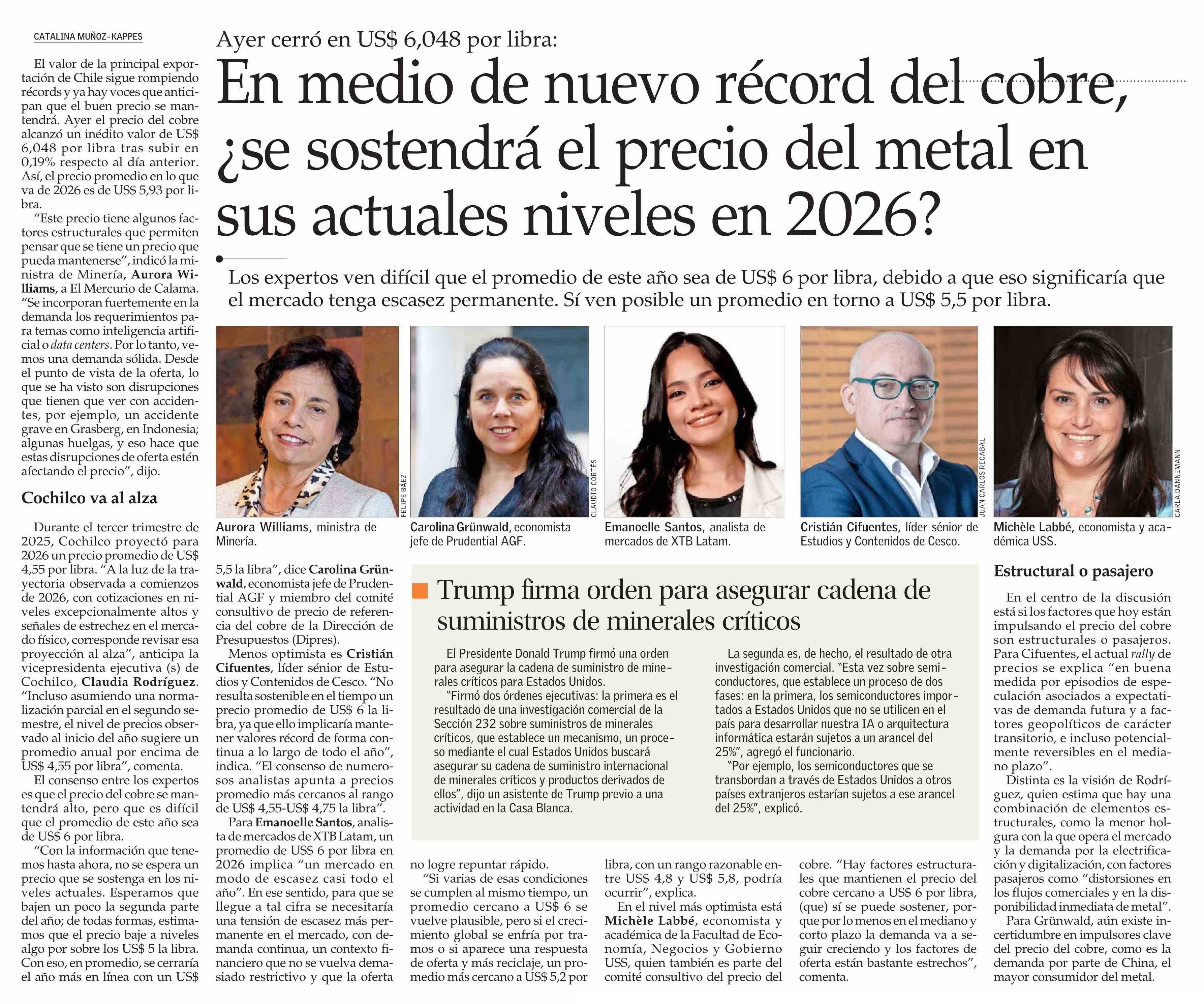 En medio de nuevo récord del cobre, ¿se sostendrá el precio del metal en sus actuales niveles en 2026?