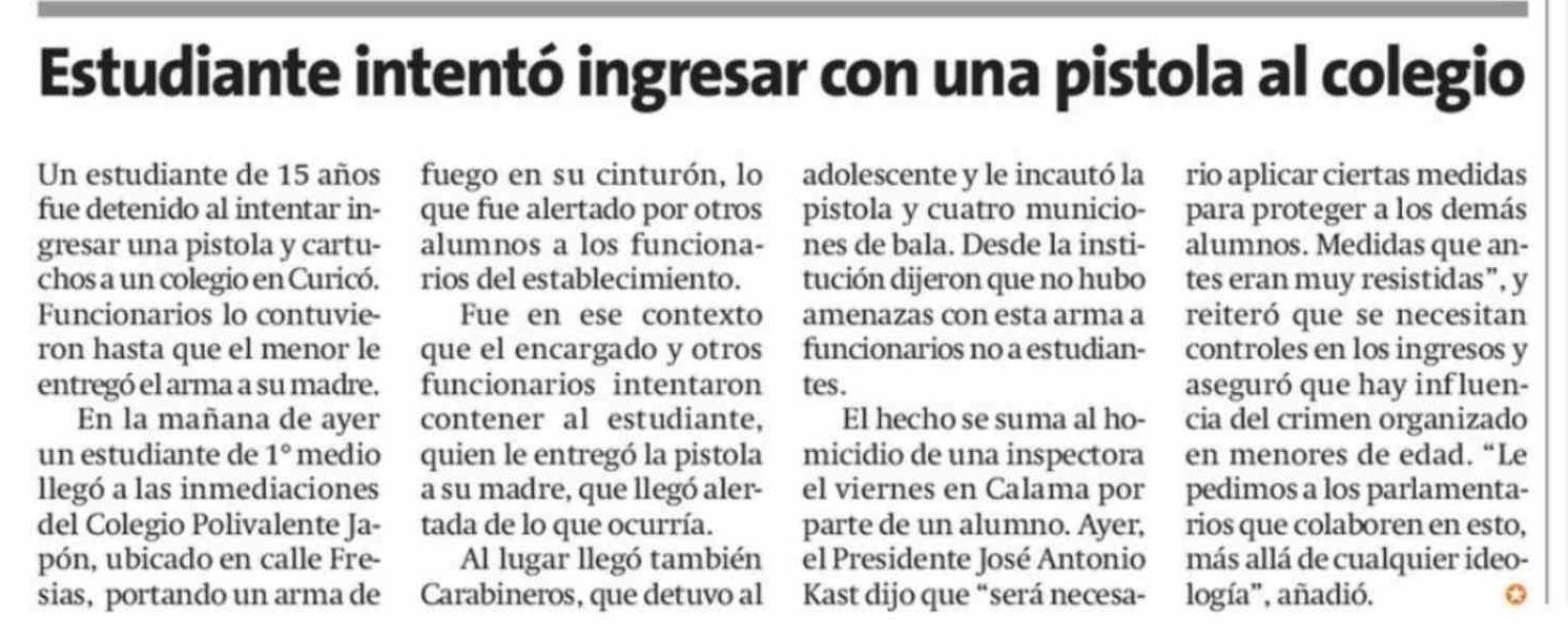 Estudiante intentó ingresar con una pistola al colegio