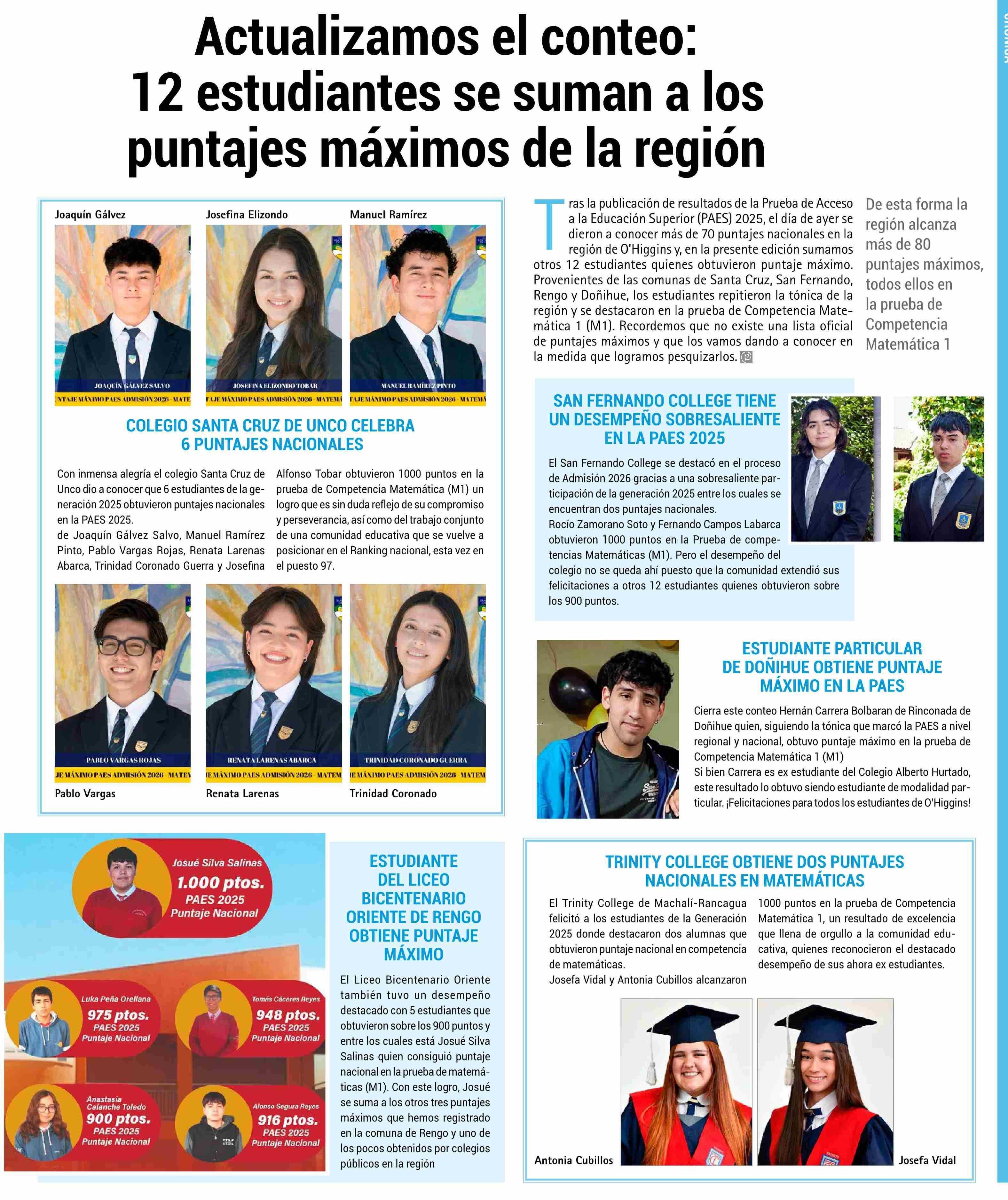 Actualizamos el conteo: 12 estudiantes se suman a los puntajes máximos de la región