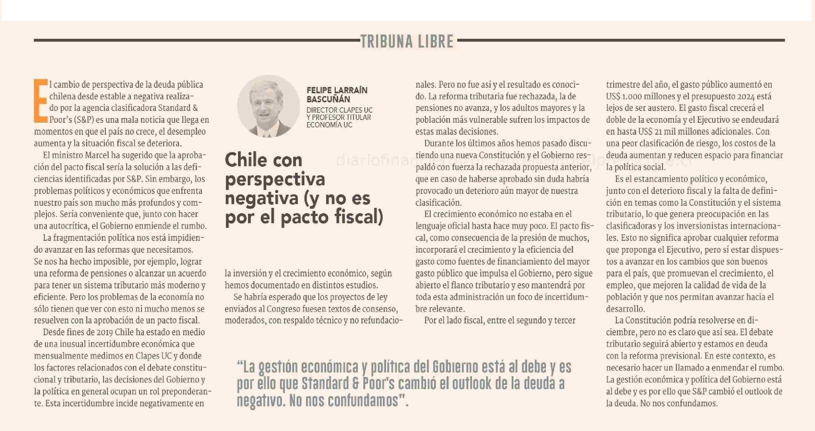 Chile con perspectiva negativa (y no es por el pacto fiscal)
