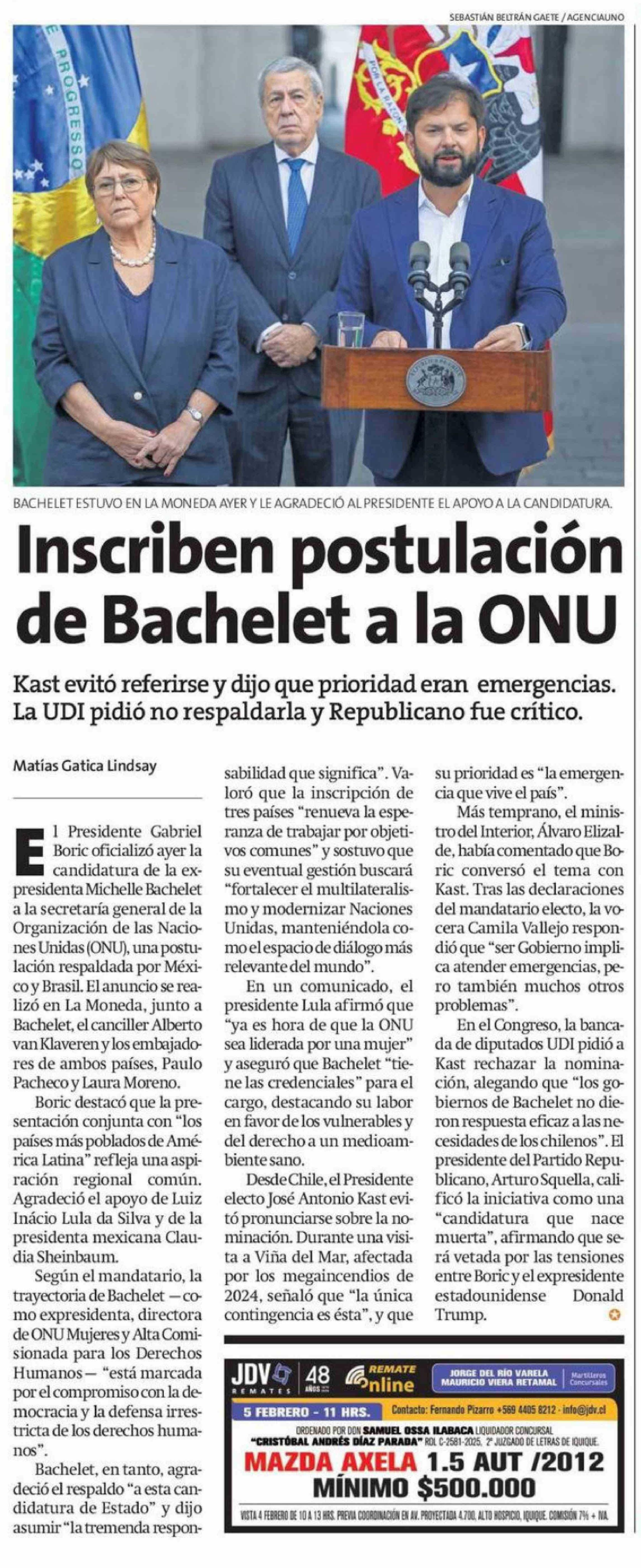 Título: Inscriben postulación de Bachelet a la ONU