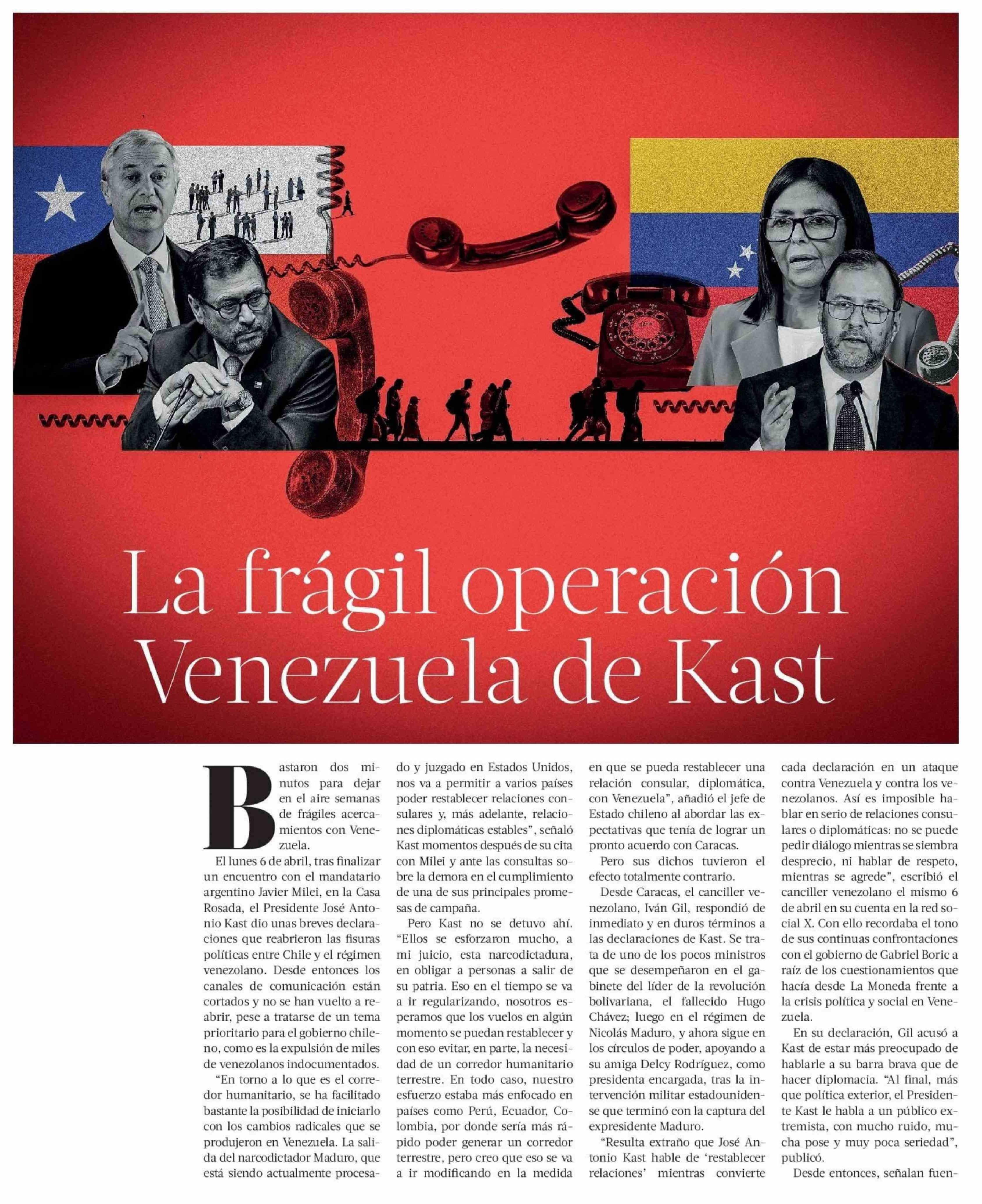 La frágil operación Venezuela de Kast 26-04-2026 La Tercera |