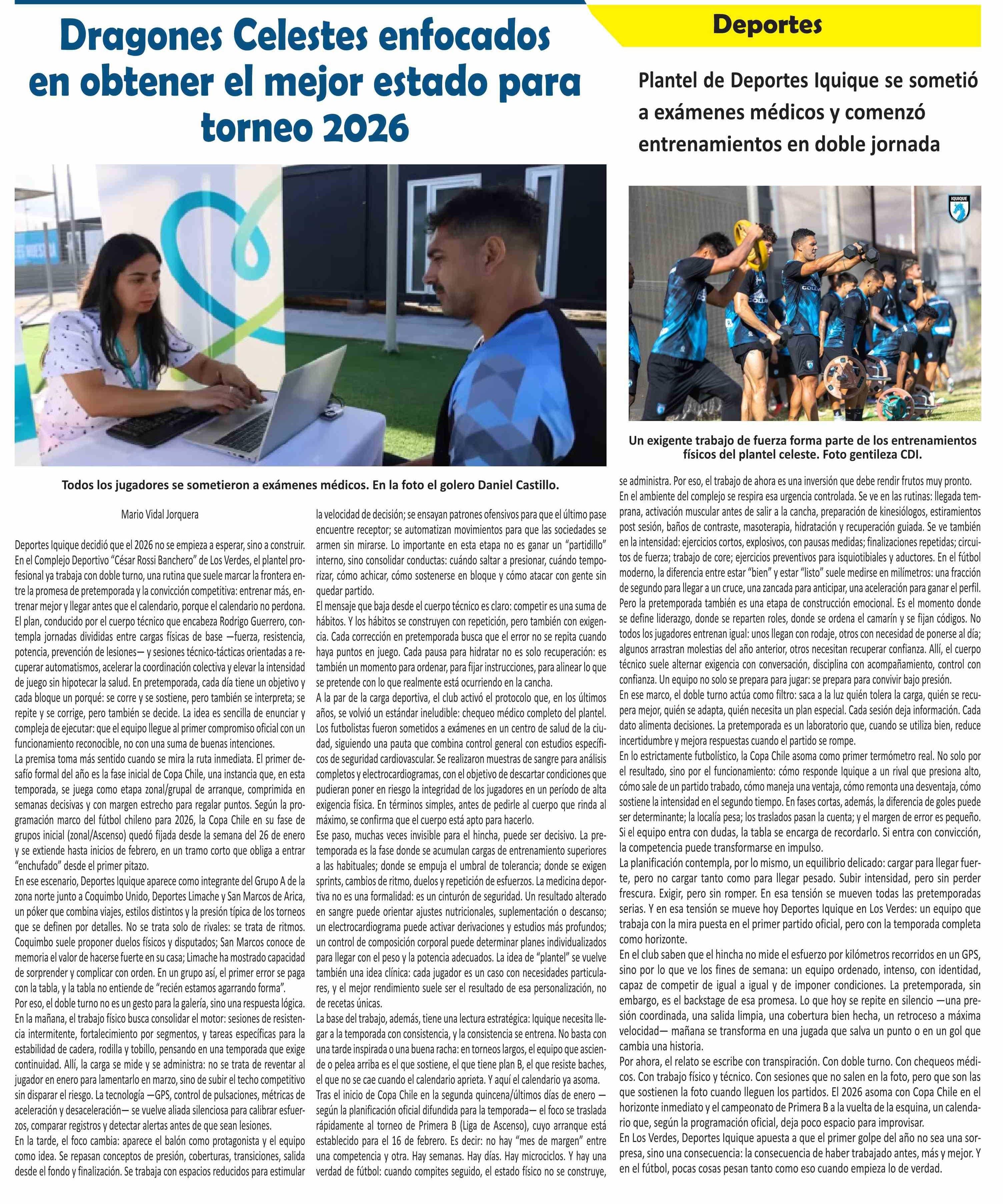| Fecha: | 14-01-2026 | Sector: | Noticia general | Región: | Región de Tarapacá |
