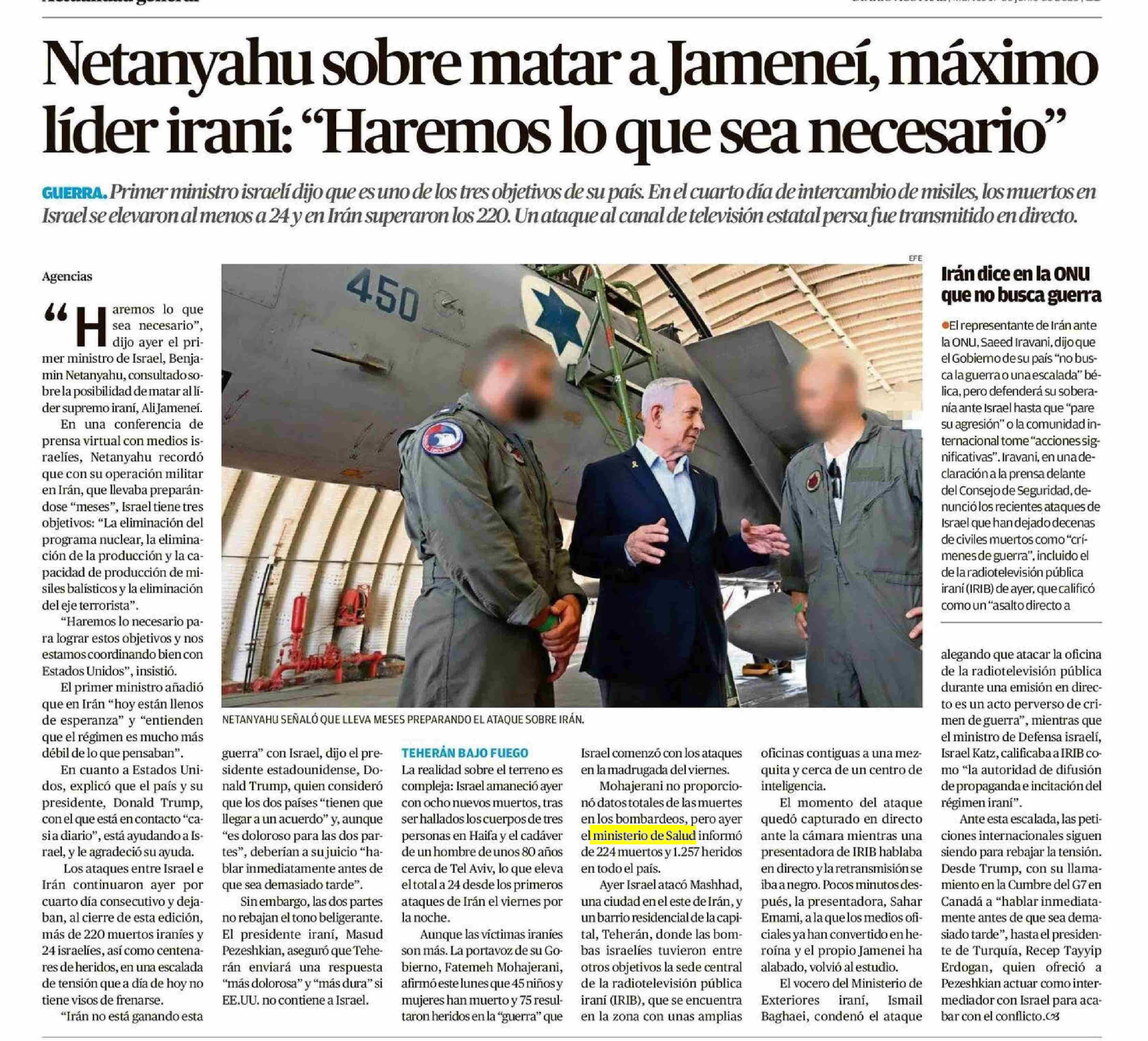 Netanyahu sobre matar a Jameneí, máximo líder iraní: "Haremos lo que sea necesario" 17-06-2025 Diario Austral Región de Los Ríos |
