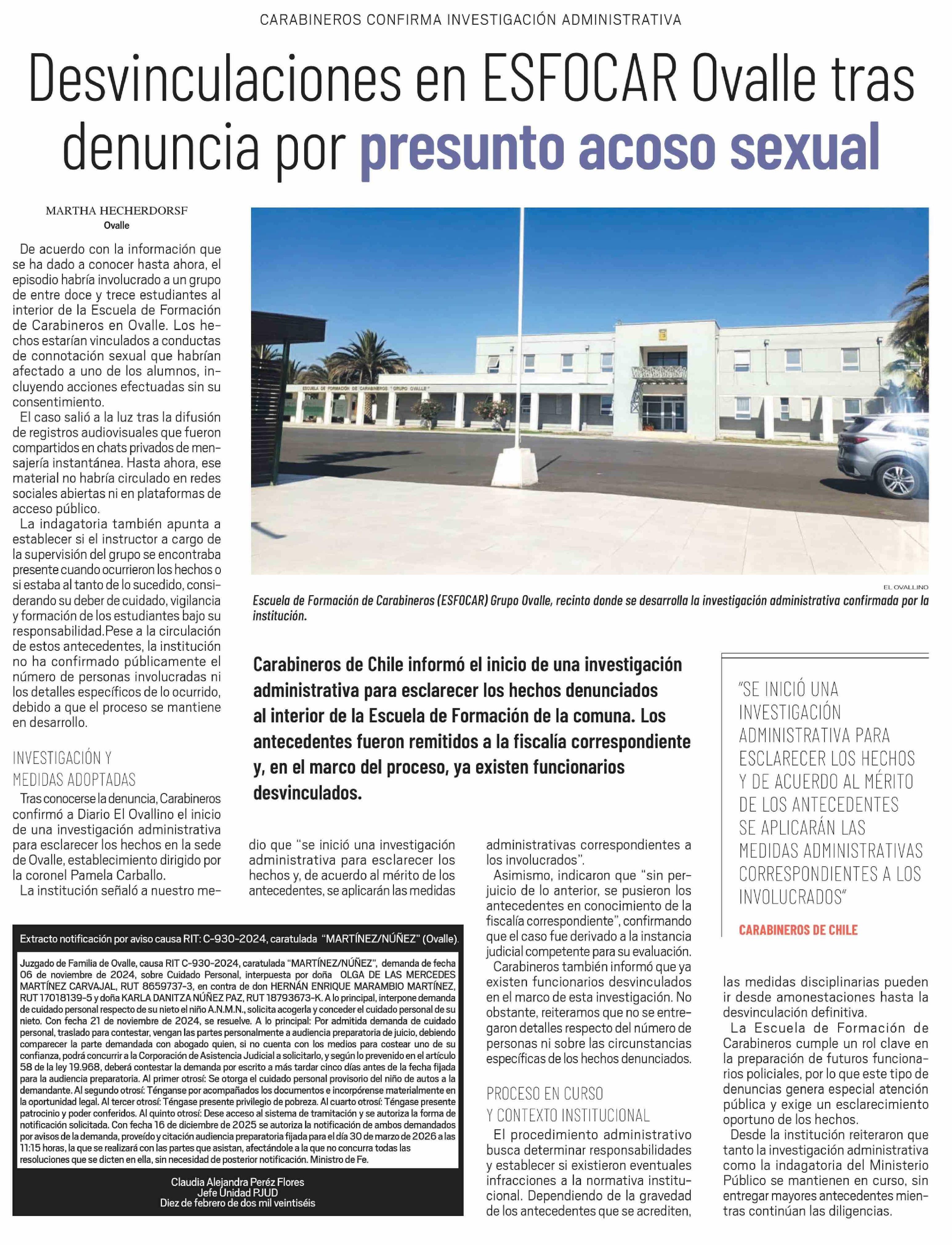 Título: Desvinculaciones en ESFOCAR Ovalle tras denuncia por presunto acoso sexual