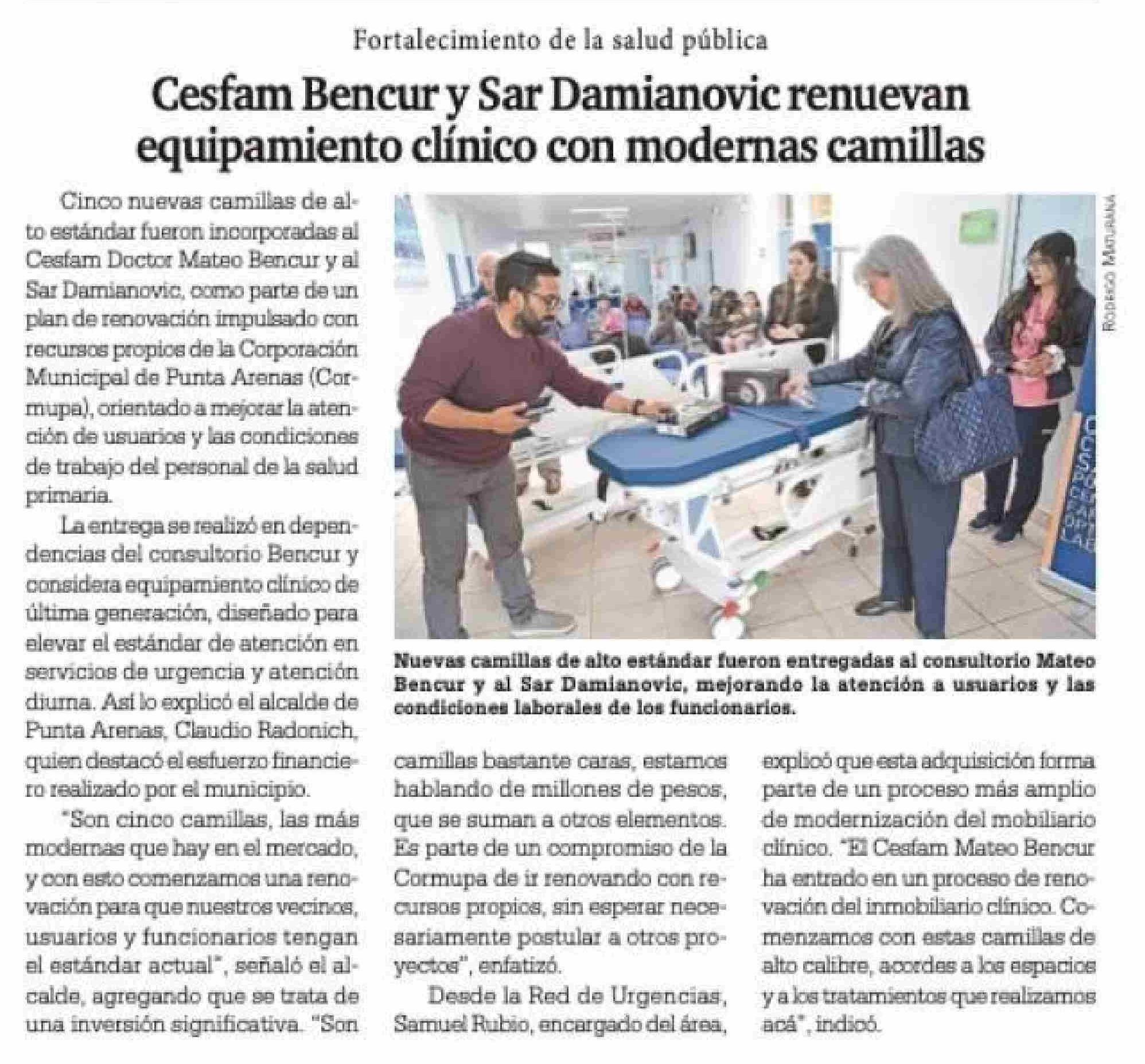 Cesfam Bencur y Sar Damianovic renuevan equipamiento clínico con modernas camillas 24-01-2026 La Prensa Austral |