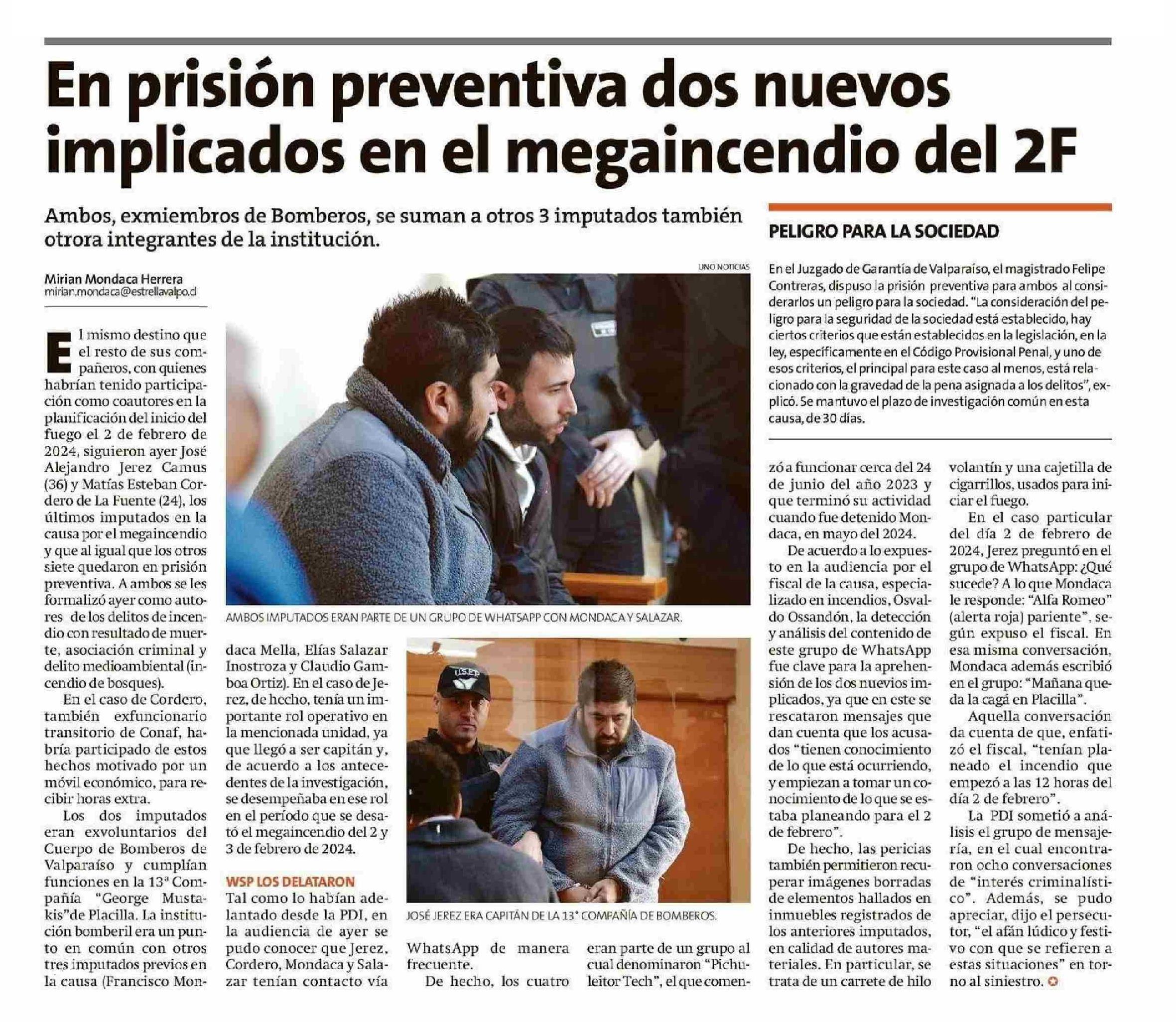 En prisión preventiva dos nuevos implicados en el megaincendio del 2F 24-05-2025 La Estrella de Valparaíso |