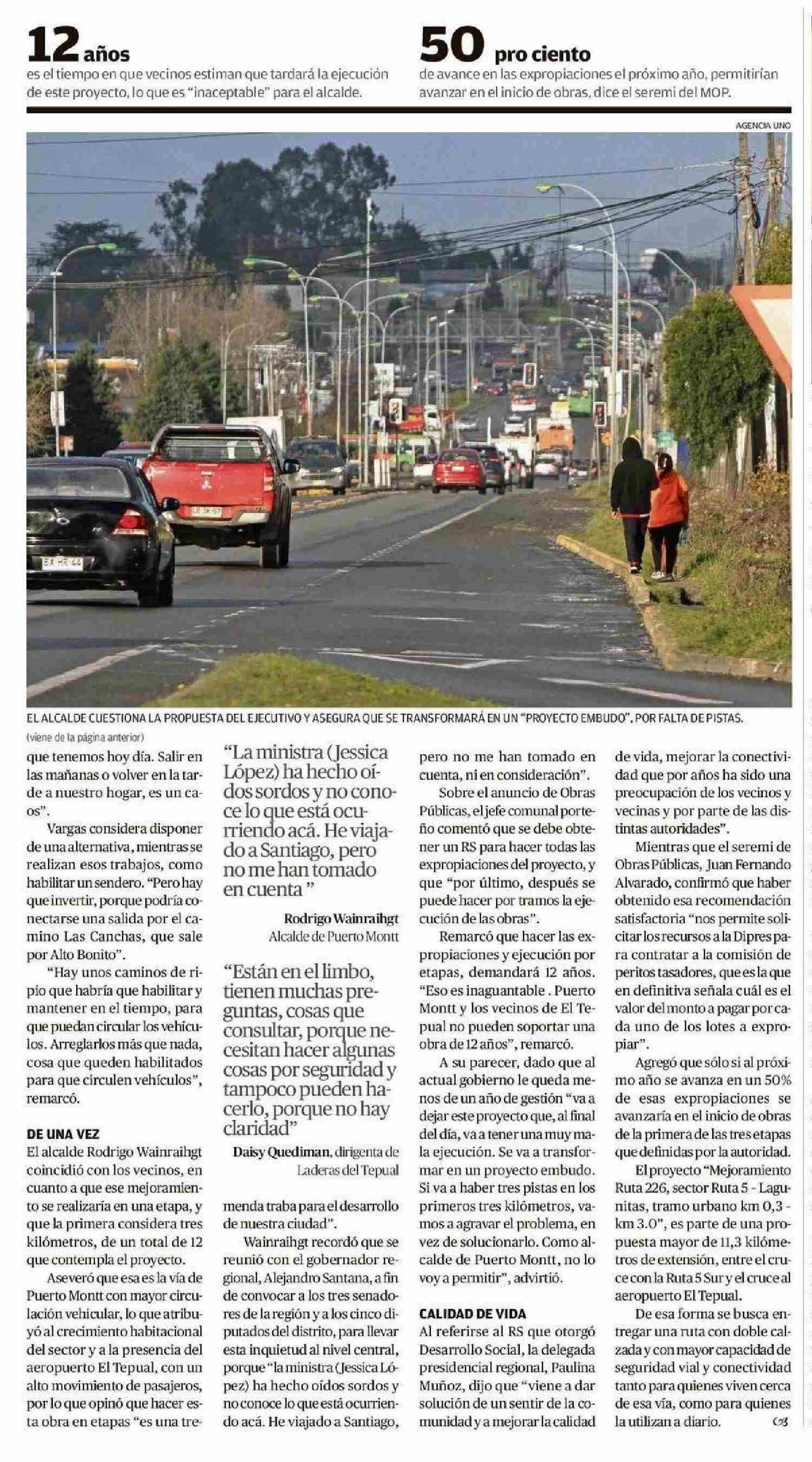 | Título: | Dirigentes vecinales exponen sus dudas por el mejoramiento de Ruta El Tepual |