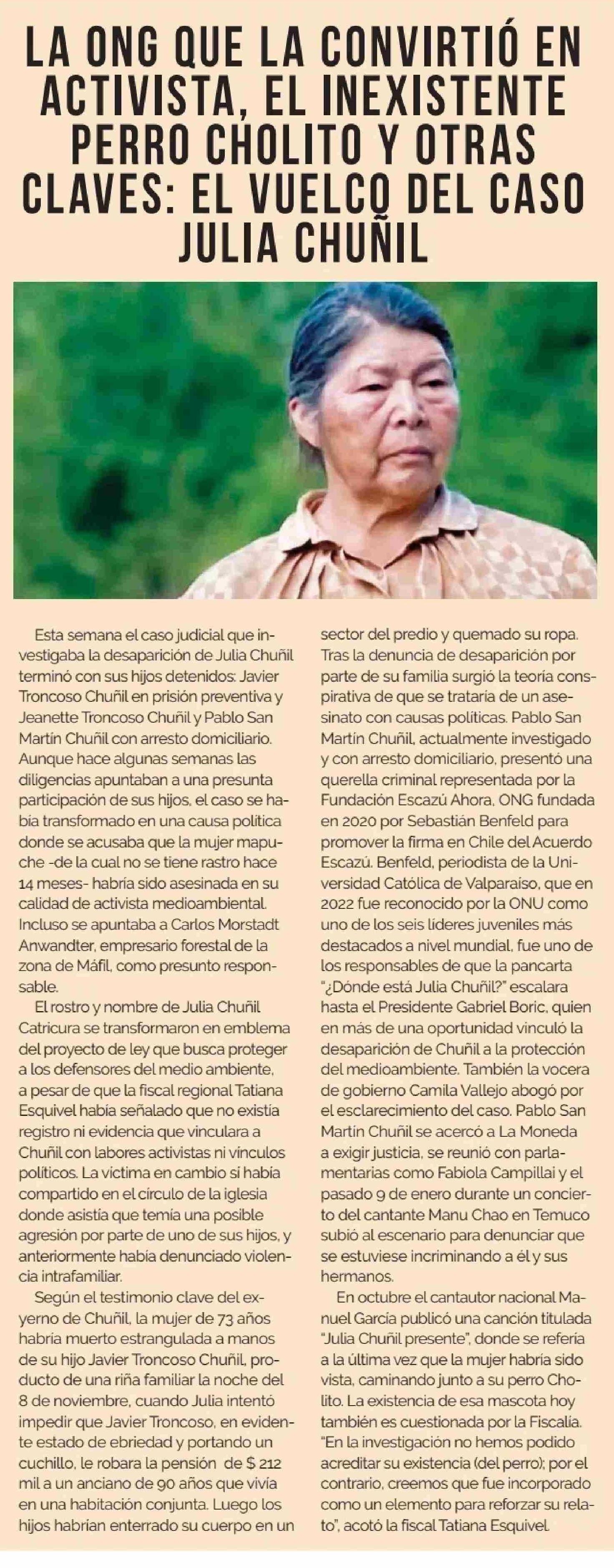 Título: LA ONG QUE LA CONVIRTIÓ EN ACTIVISTA, EL INEXISTENTE PERRO CHOLITO Y OTRAS CLAVES: EL VUELCO DEL CASO JULIA CHUNIL