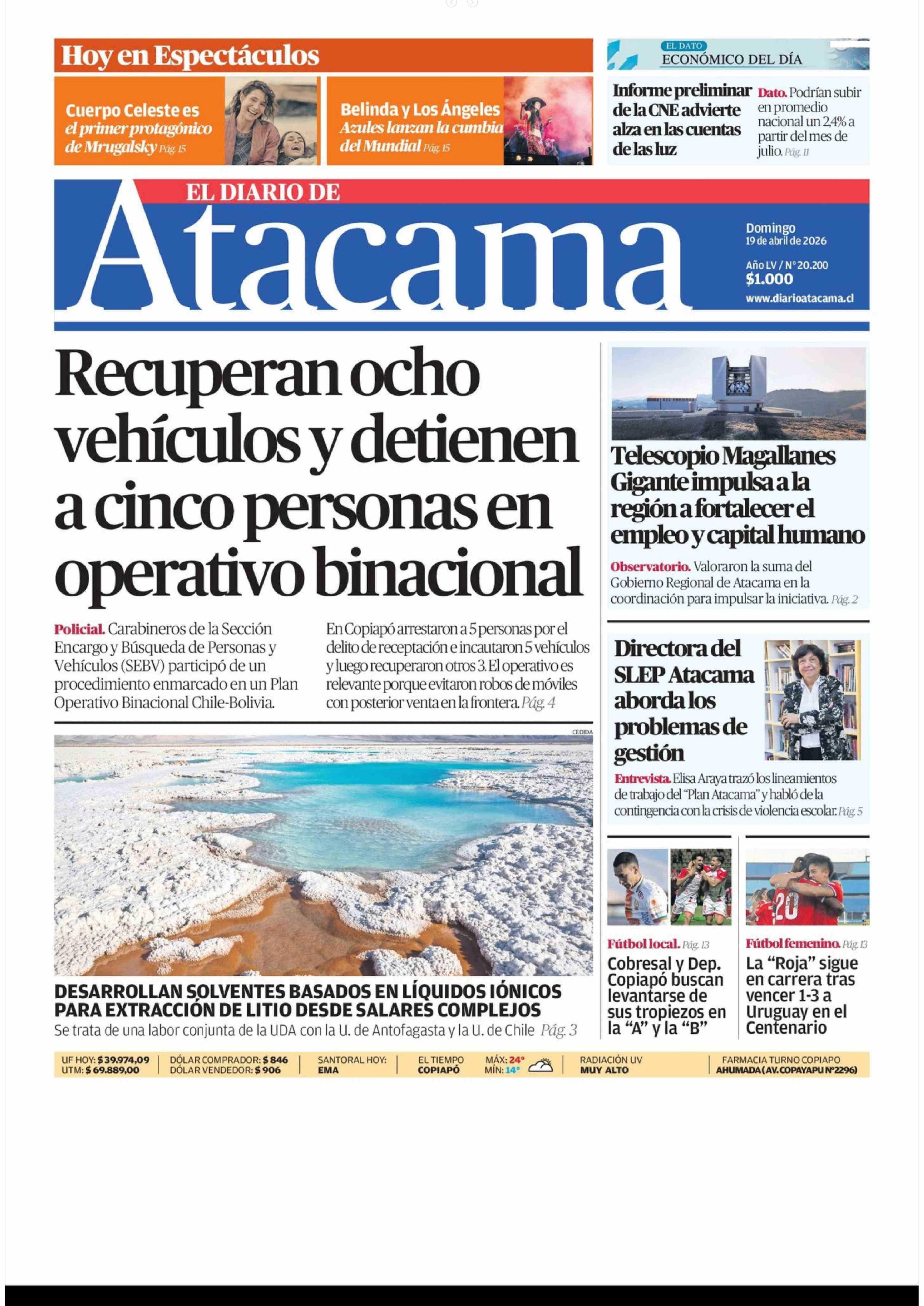 | Fecha: | 19-04-2026 | Sector: | Portada | Región: | Región de Atacama |