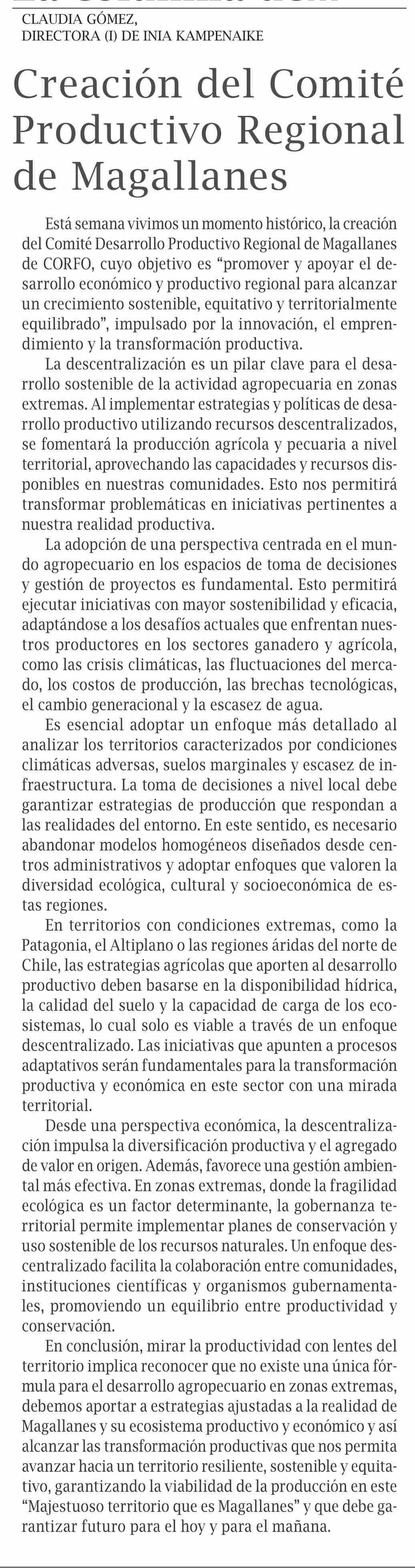 | Título: | Columnas de Opinión: Creación del Comité Productivo Regional de Magallanes |