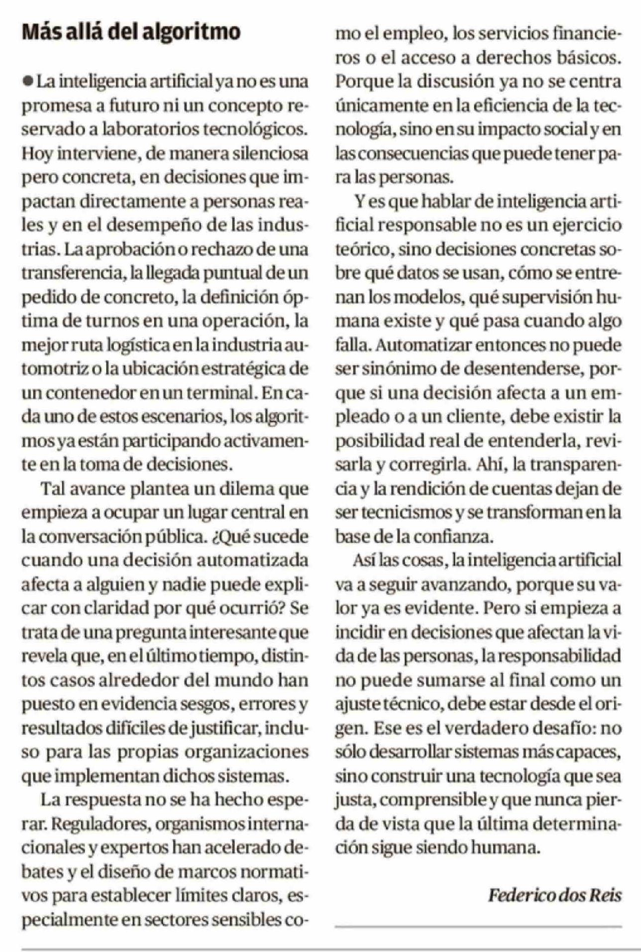 Cartas: Más allá del algoritmo 04-03-2026 El Austral de Osorno |