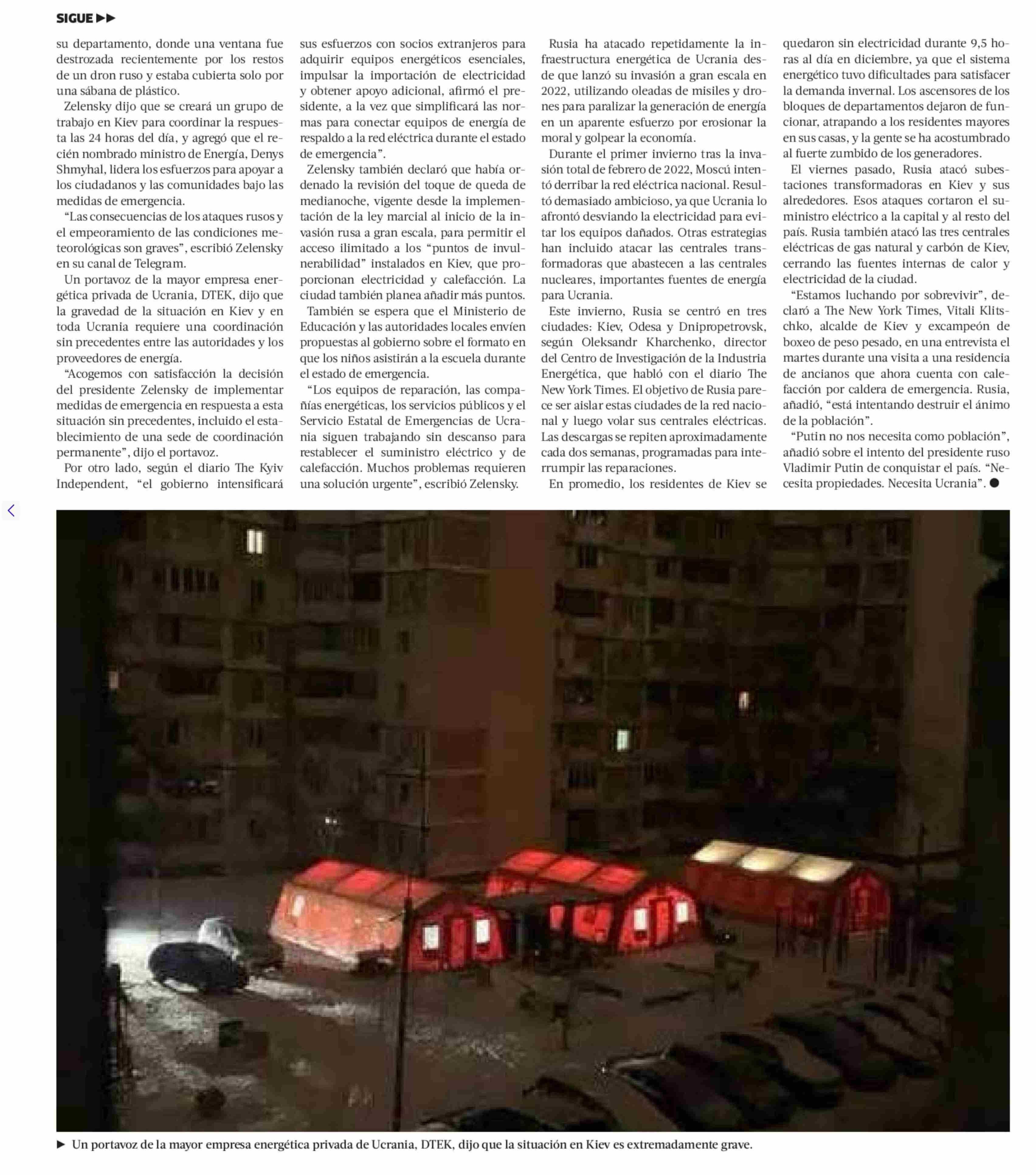 El invierno más cruel en Kiev: sin electricidad ni agua y a -19 ?, ucranianos buscan alivio de los ataques rusos 16-01-2026 La Tercera |