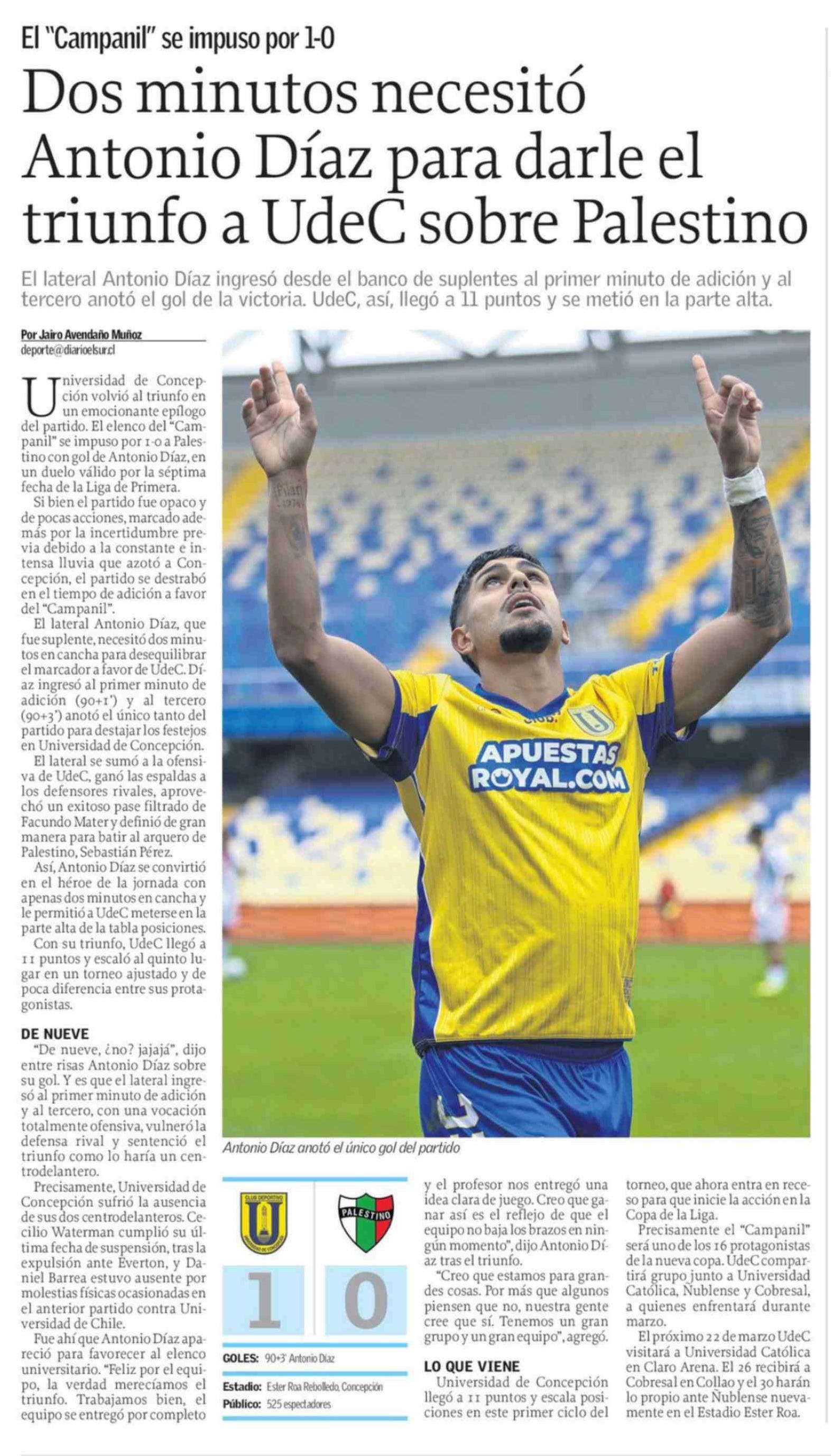 Título: Dos minutos necesitó Antonio Díaz para darle el triunfo a UdeC sobre Palestino