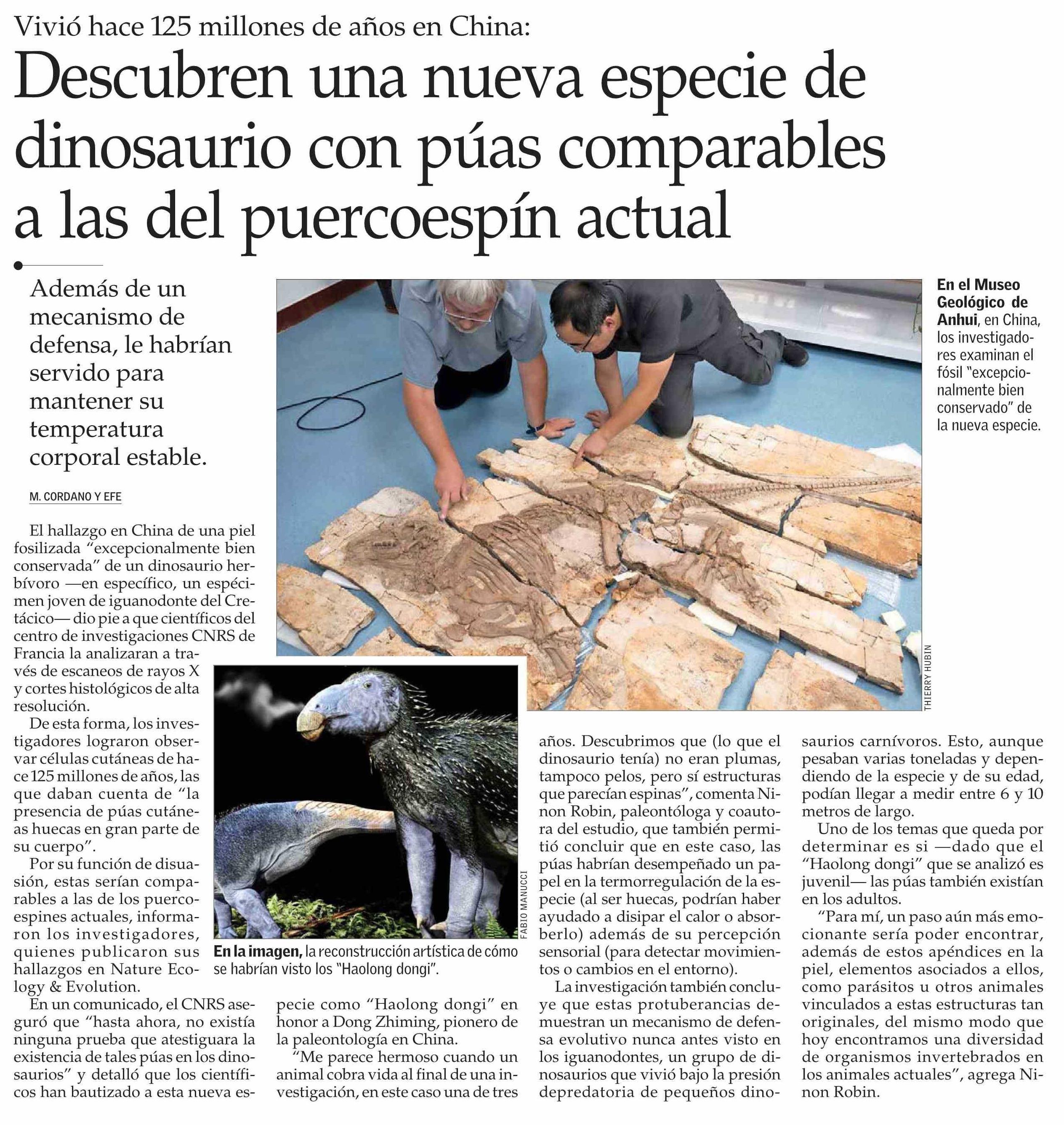 Título: Descubren una nueva especie de dinosaurio con púas comparables a las del puercoespín actual