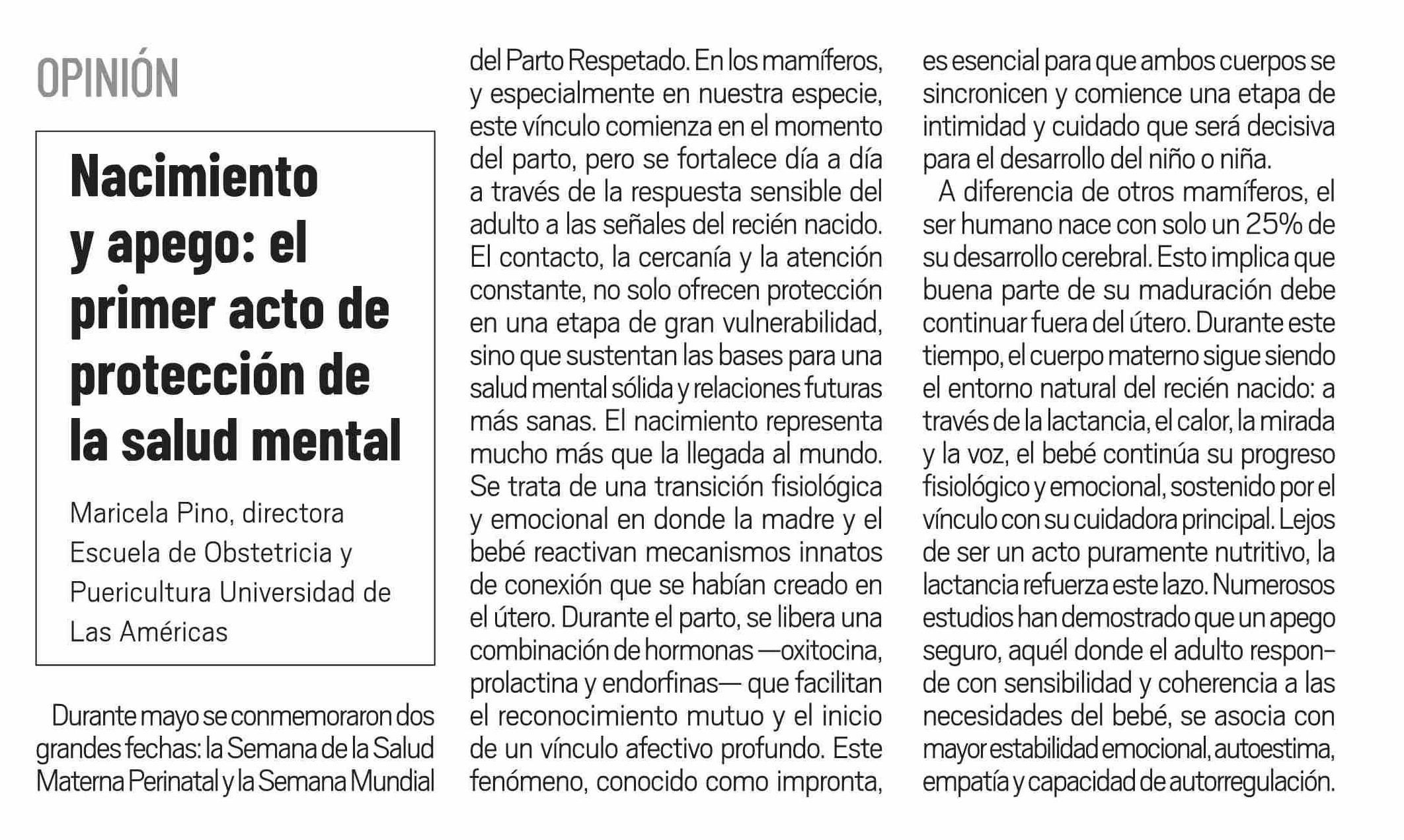 Título: COLUMNAS DE OPINIÓN: Nacimiento y apego: el primer acto de protección de la salud mental
