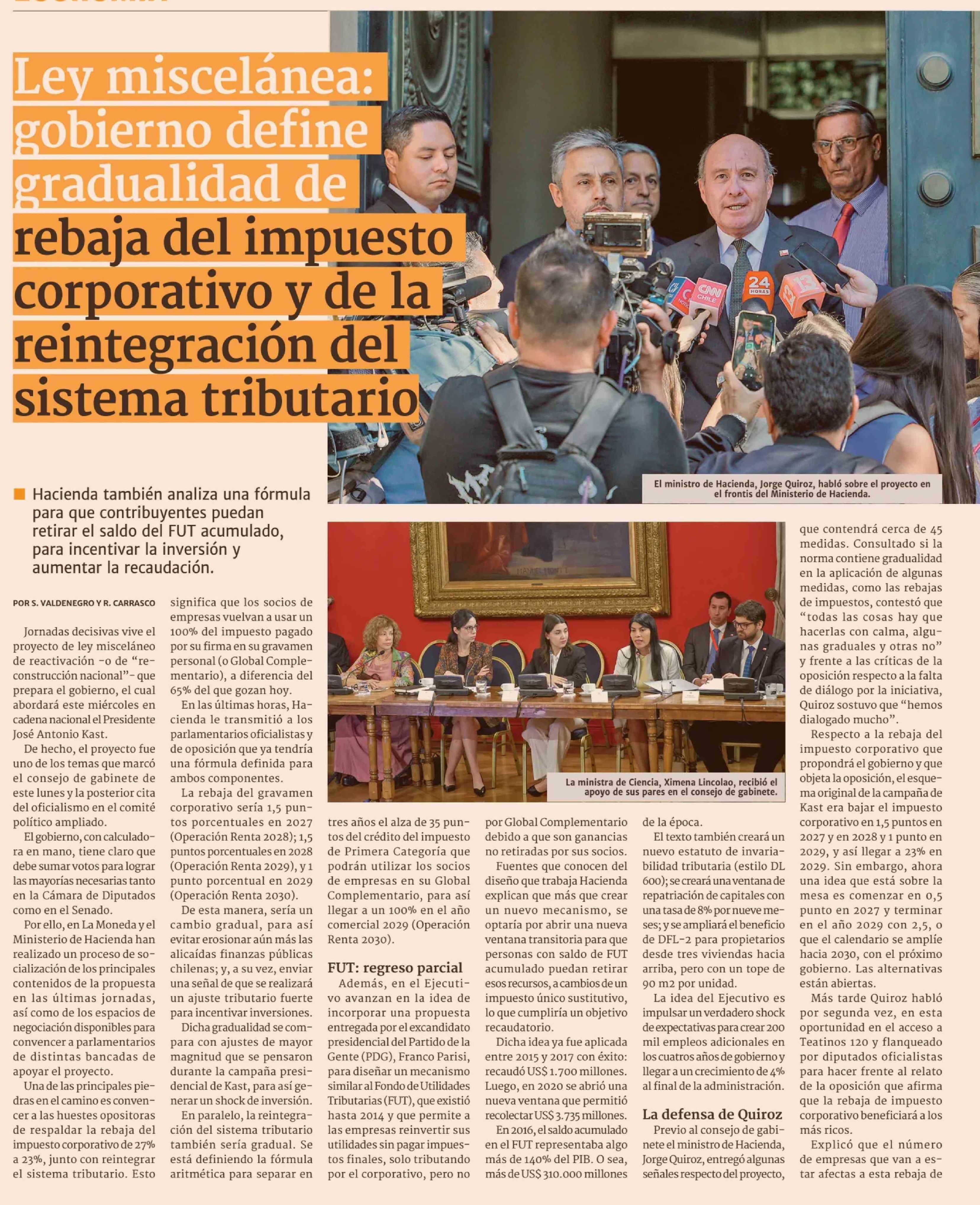 Título: Ley miscelánea: gobierno define gradualidad de rebaja del impuesto corporativo y de la reintegración del sistema tributario