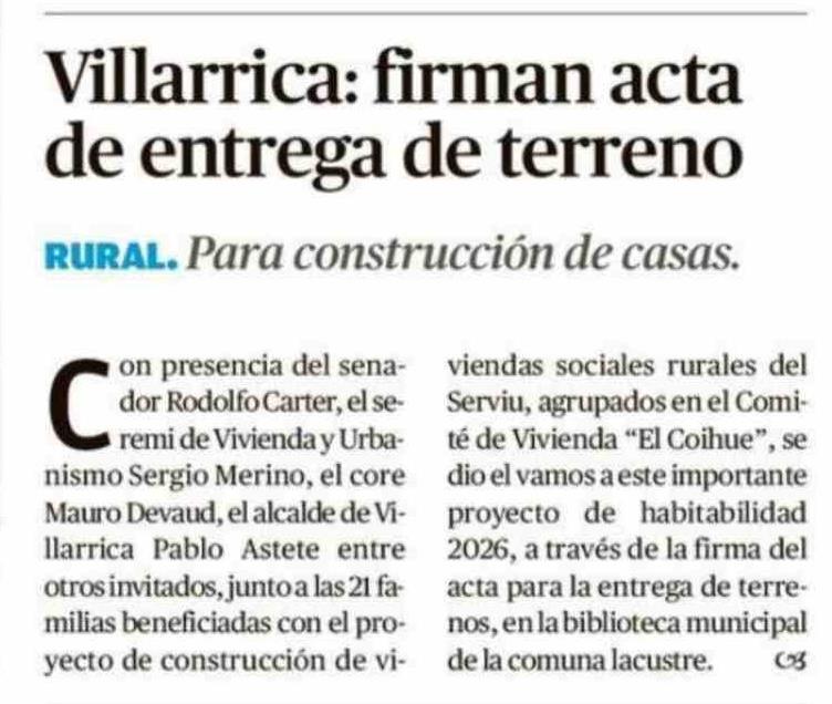 Villarrica: firman acta de entrega de terreno 19-04-2026 El Austral de la Araucanía |