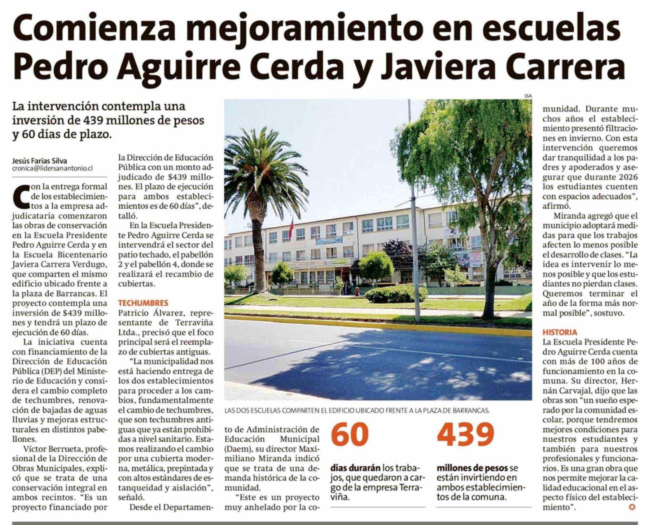 Título: Comienza mejoramiento en escuelas Pedro Aguirre Cerda y Javiera Carrera