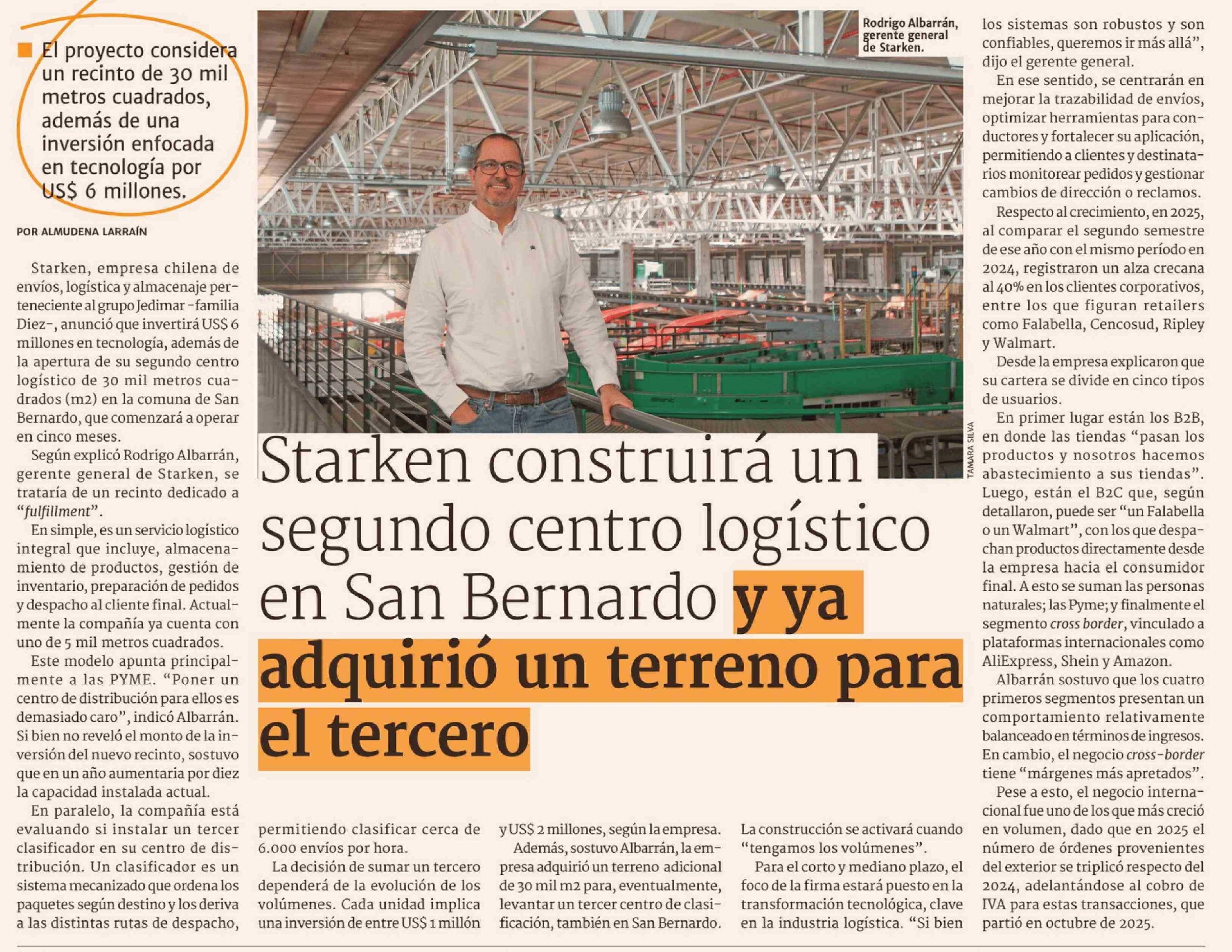 Starken construirá un segundo centro logístico en San Bernardo y ya adquirió un terreno para el tercero 02-03-2026 Diario Financiero |