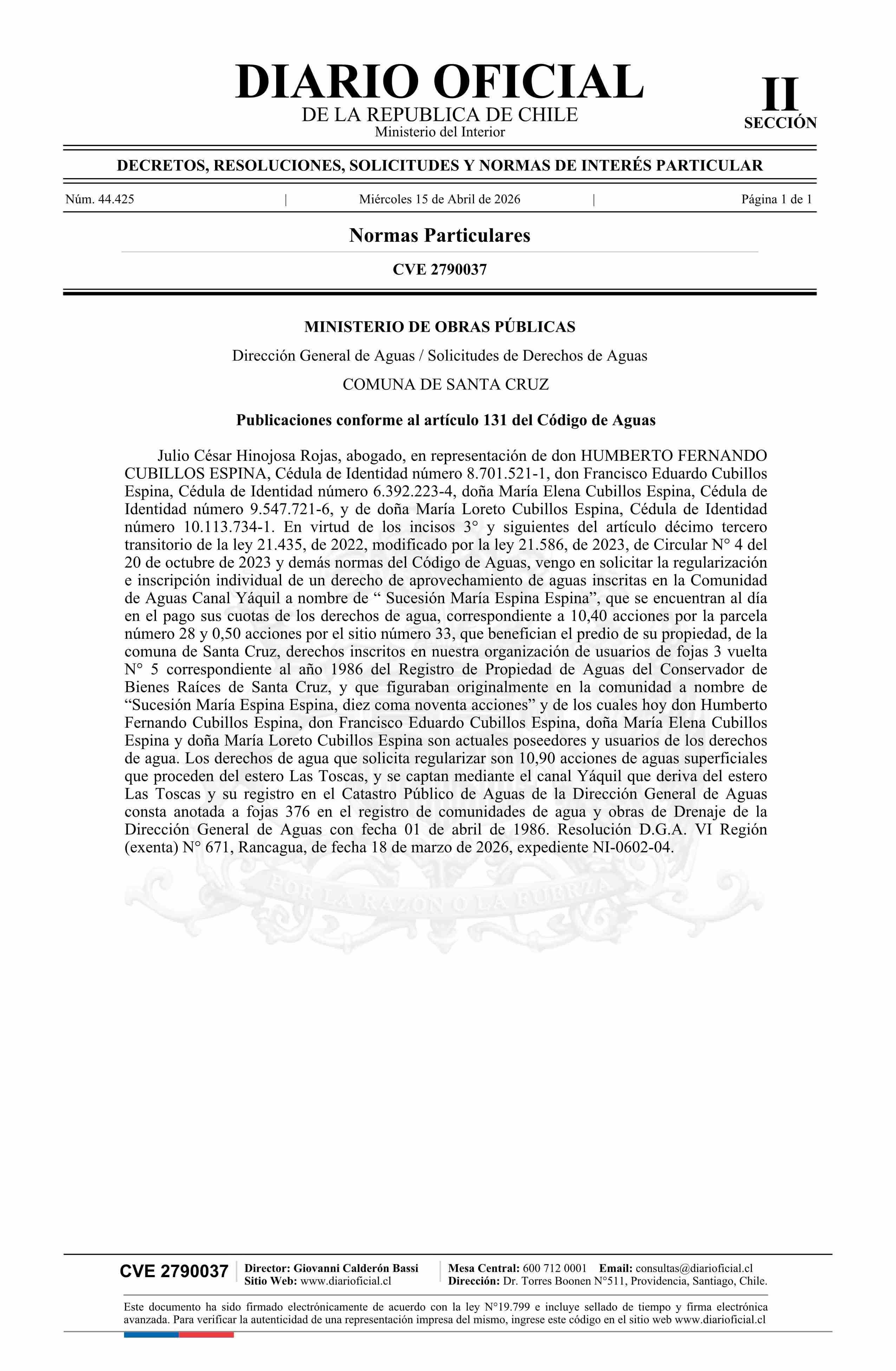 Fuente: Diario Oficial Edición Electrónica (Diario Oficial de Chile - 2 Normas Particulares) Página(s): 352