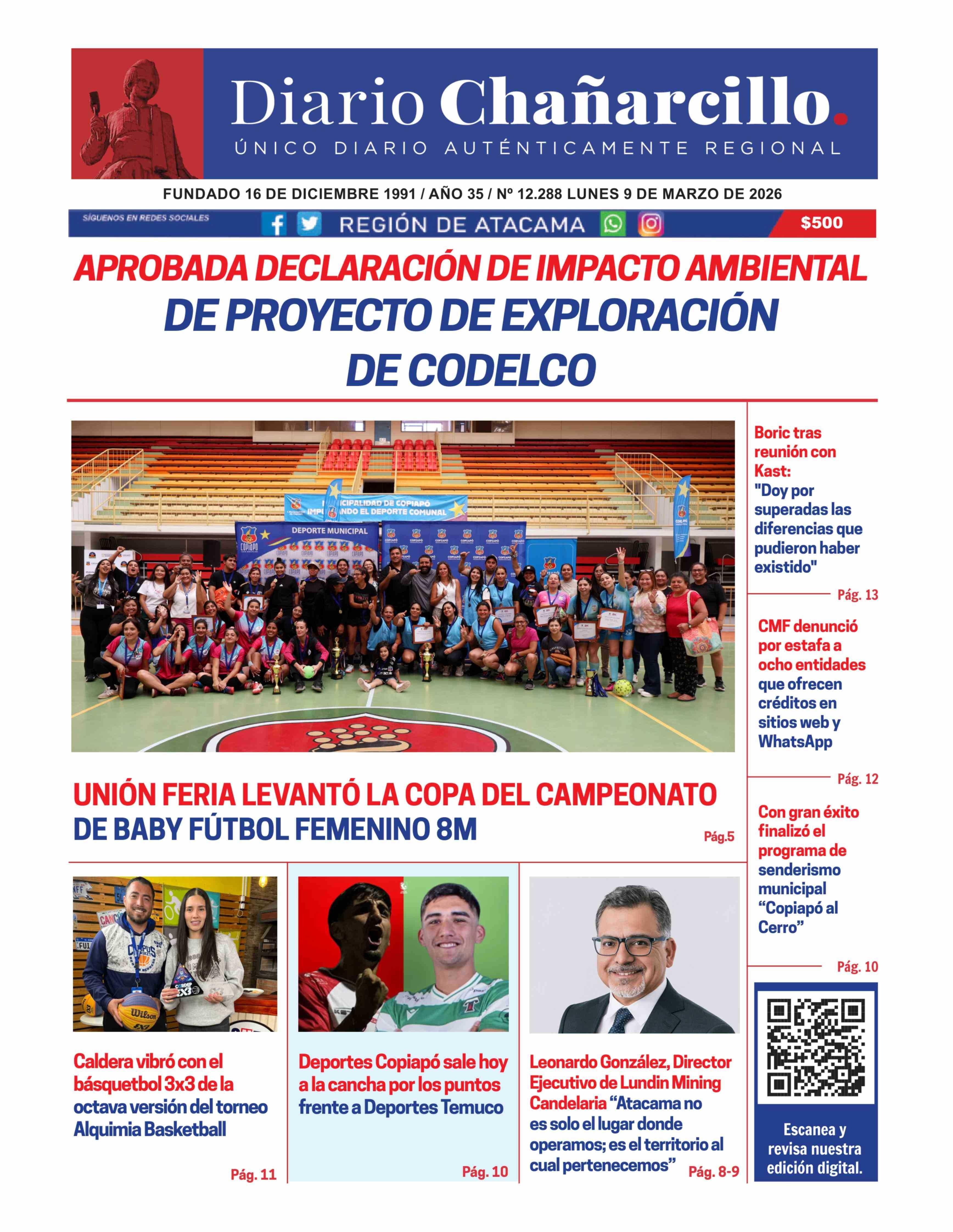 PORTADA DIARIO CHAÑARCILLO CHILE 09-03-2026 Diario Chañarcillo |