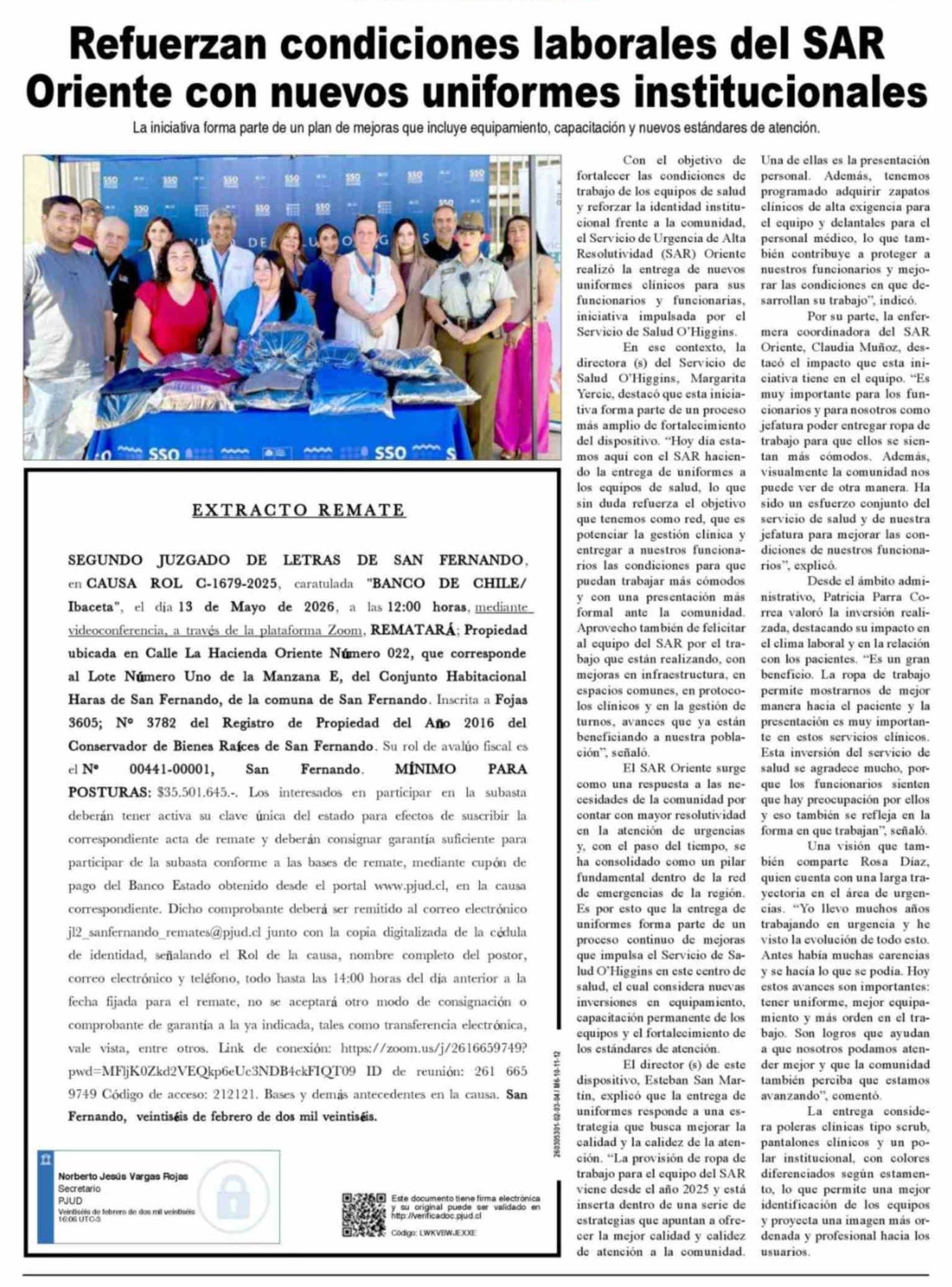 | Fecha: | 07-03-2026 | Sector: | Noticia general | Región: | Región del Libertador General Bernardo O'Higgins |