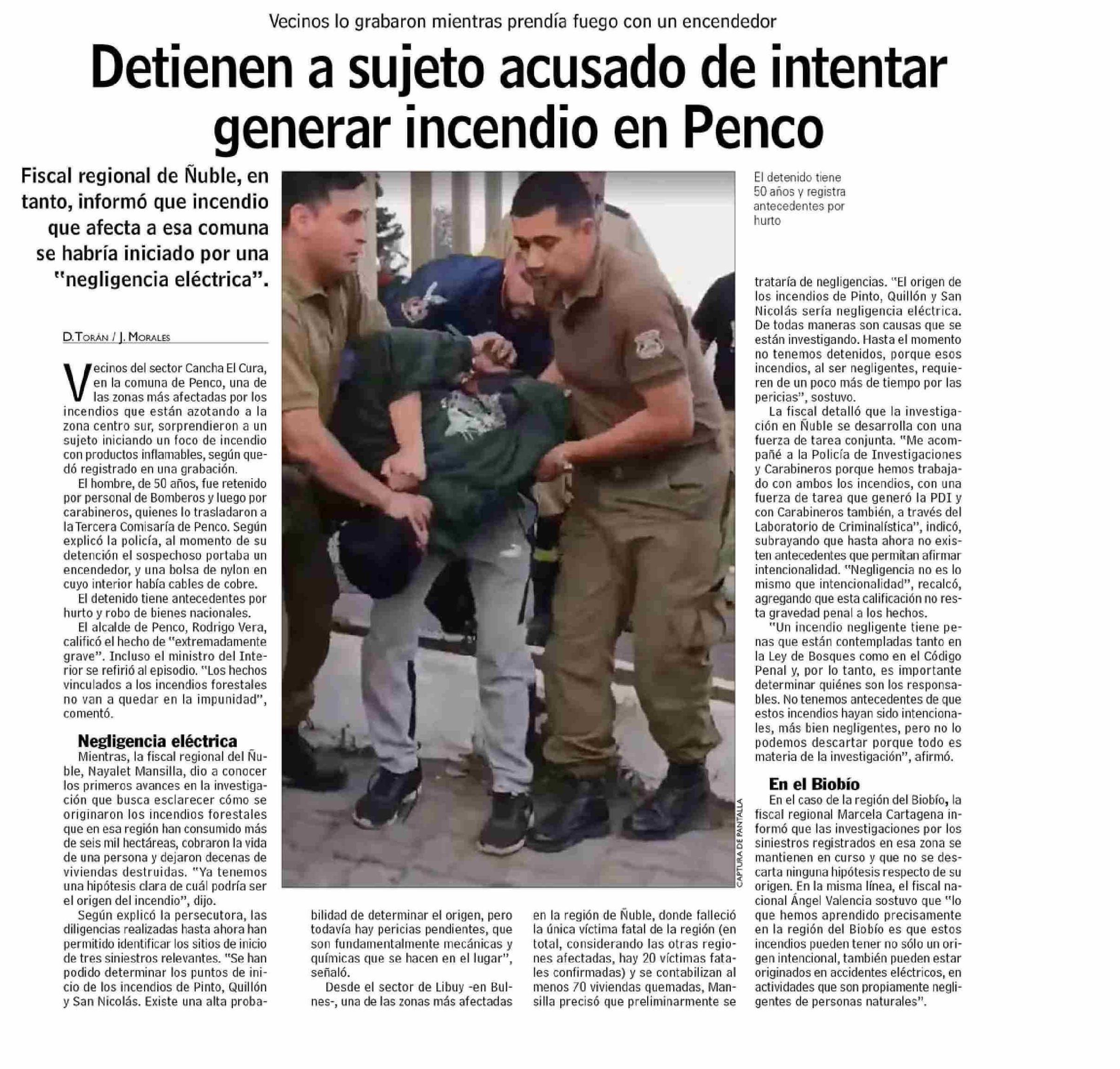 Título: Detienen a sujeto acusado de intentar generar incendio en Penco