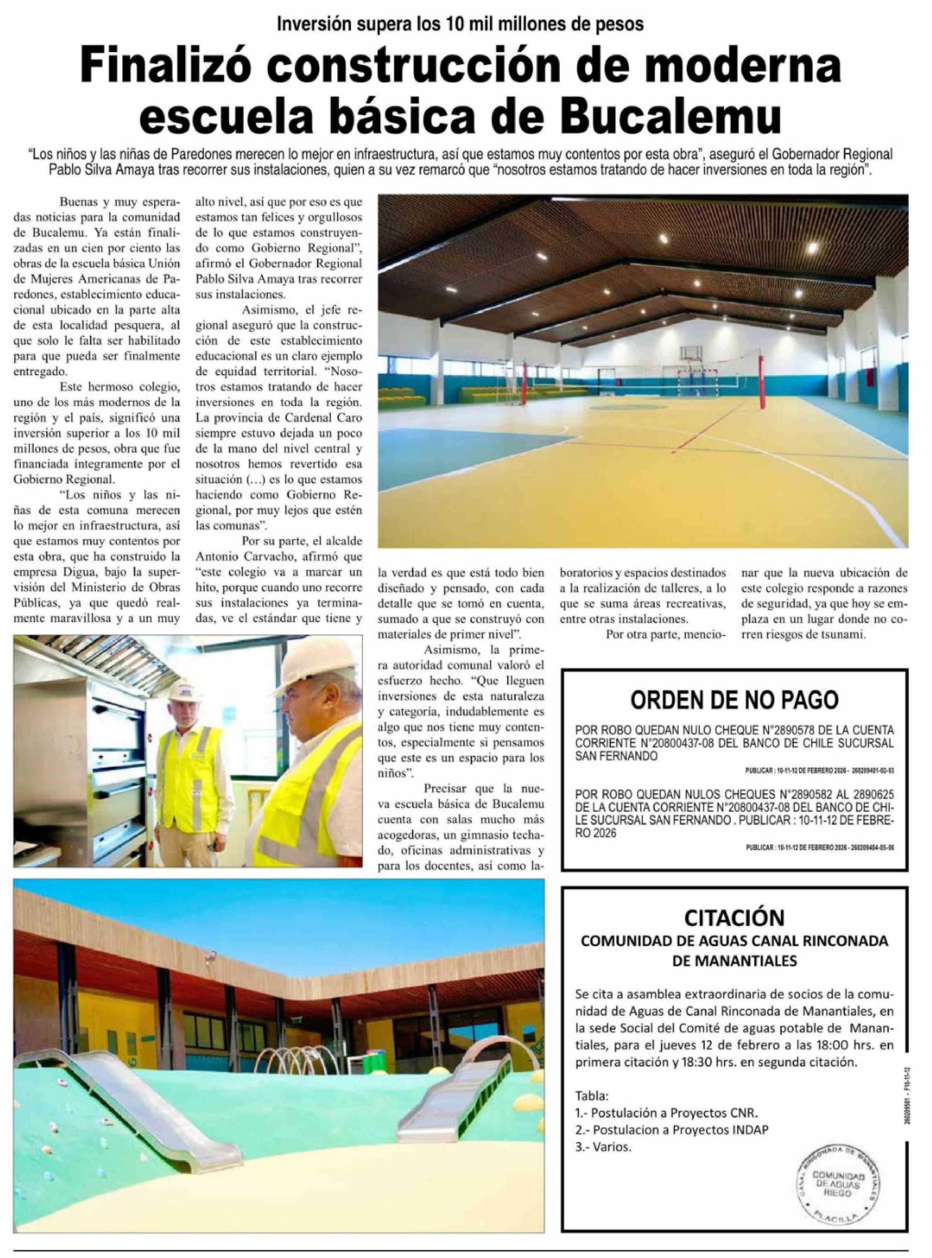 | Fecha: | 11-02-2026 | Sector: | Noticia general | Región: | Región del Libertador General Bernardo O'Higgins |