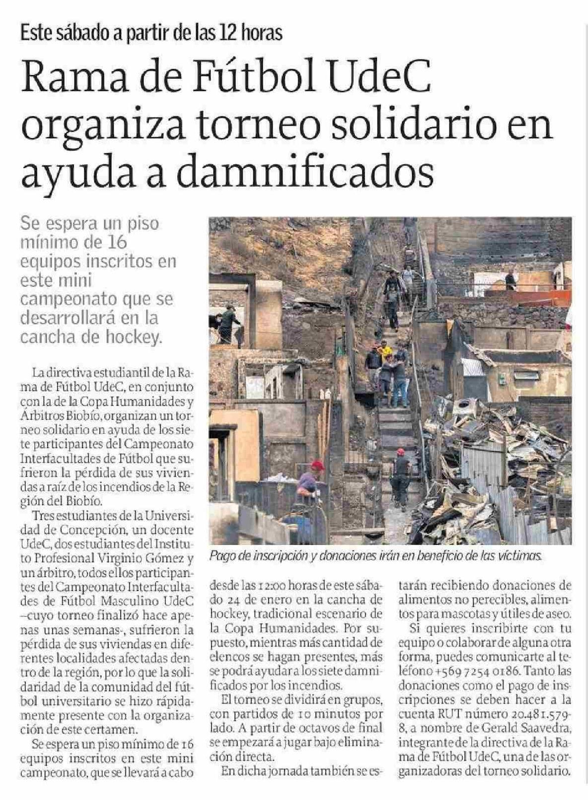 | Título: | Rama de Fútbol UdeC organiza torneo solidario en ayuda a damnificados |