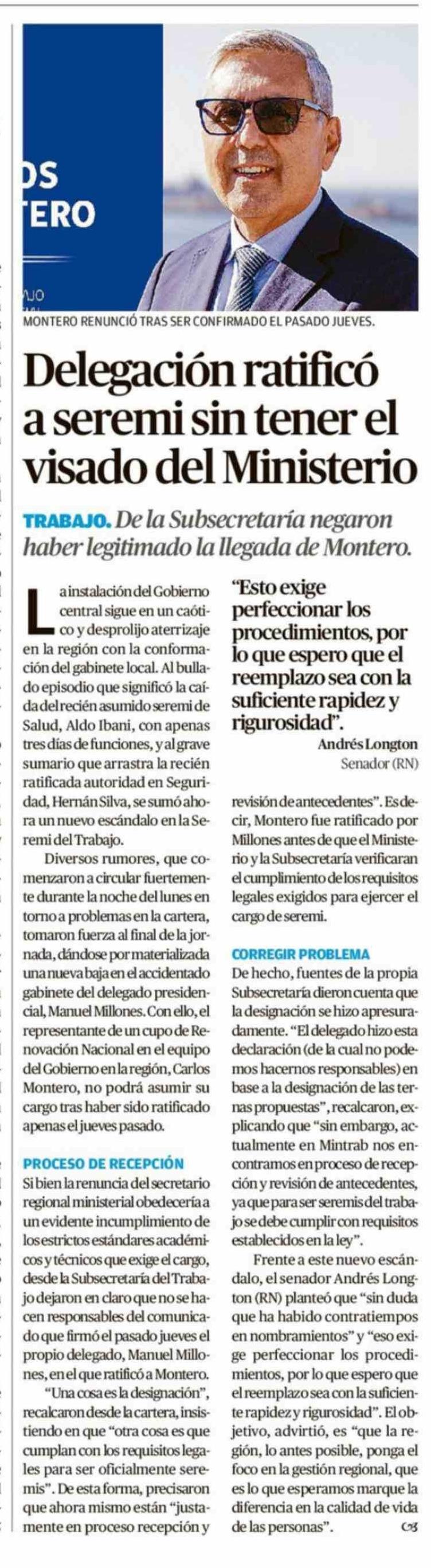 | Título: | Delegación ratificó a seremi sin tener el visado del Ministerio |