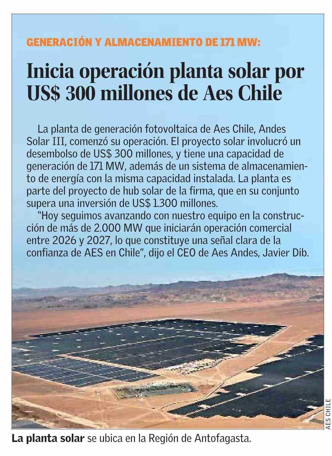 Título: Inicia operación planta solar por US$ 300 millones de Aes Chile