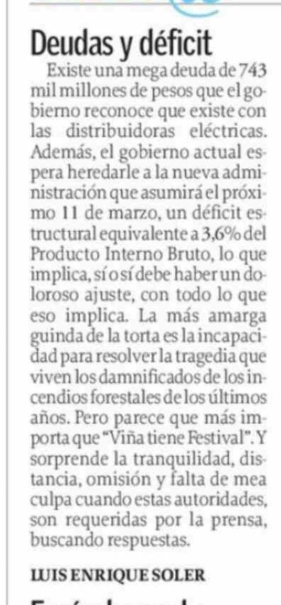 Cartas: Deudas y déficit Existe una mega deuda de 743 18-02-2026 El Sur |