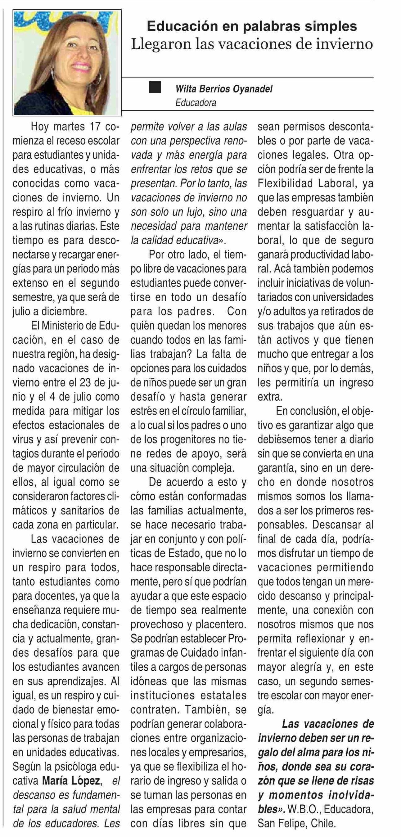 Título: COLUMNAS DE OPINIÓN: Llegaron las vacaciones de invierno