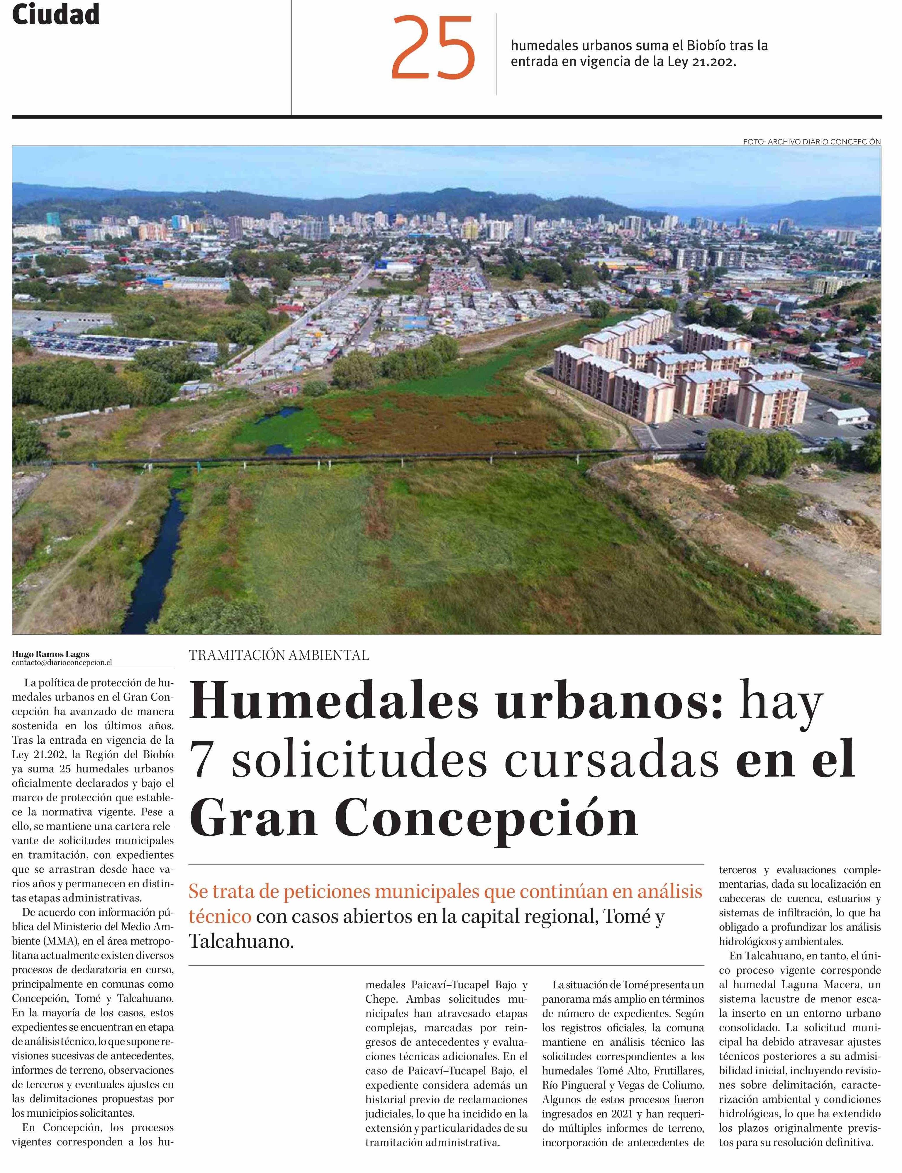 Humedales urbanos: hay 7 solicitudes cursadas en el Gran Concepción 08-02-2026 Diario Concepción |