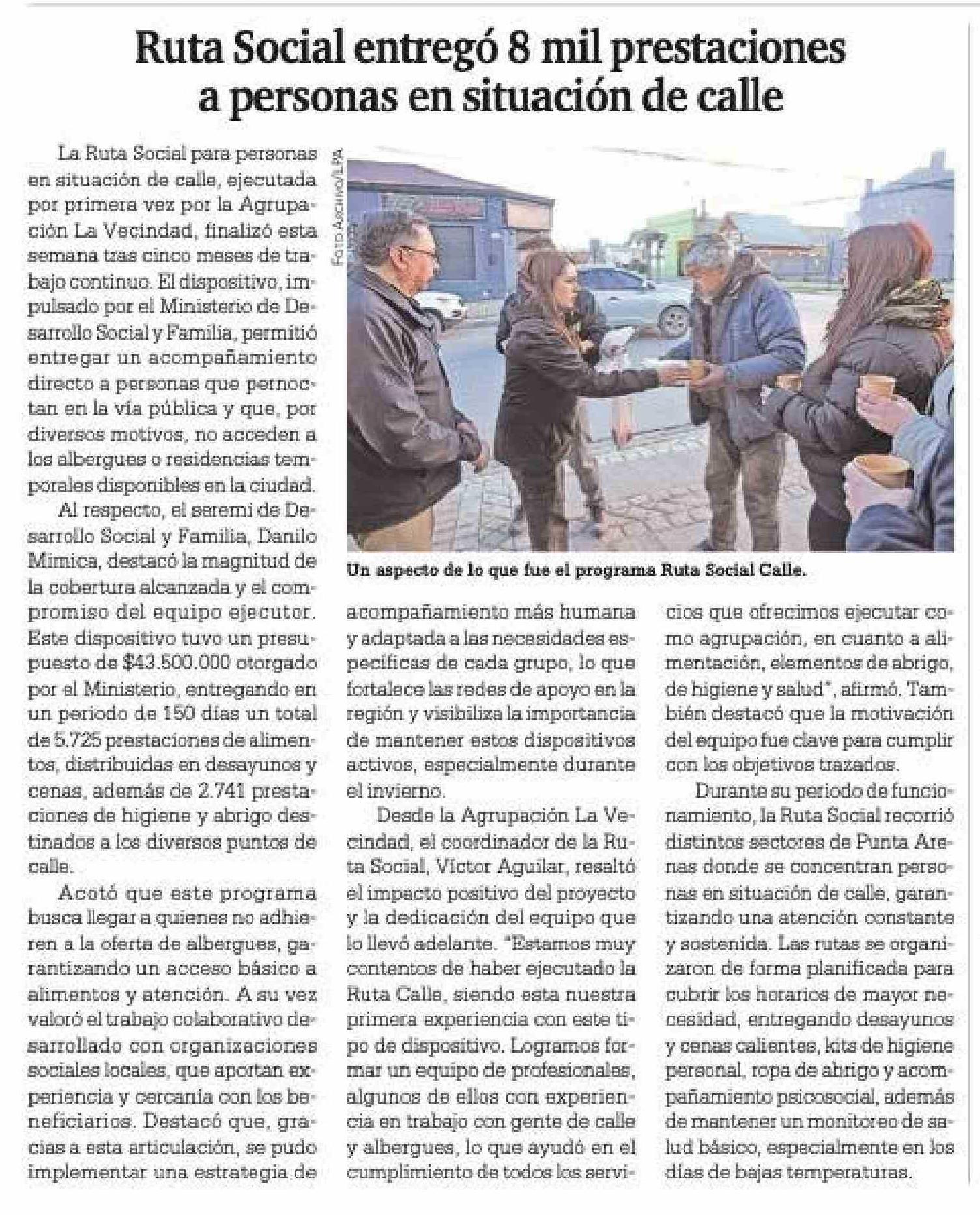 Ruta Social entregó 8 mil prestaciones a personas en situación de calle 21-01-2026 La Prensa Austral |