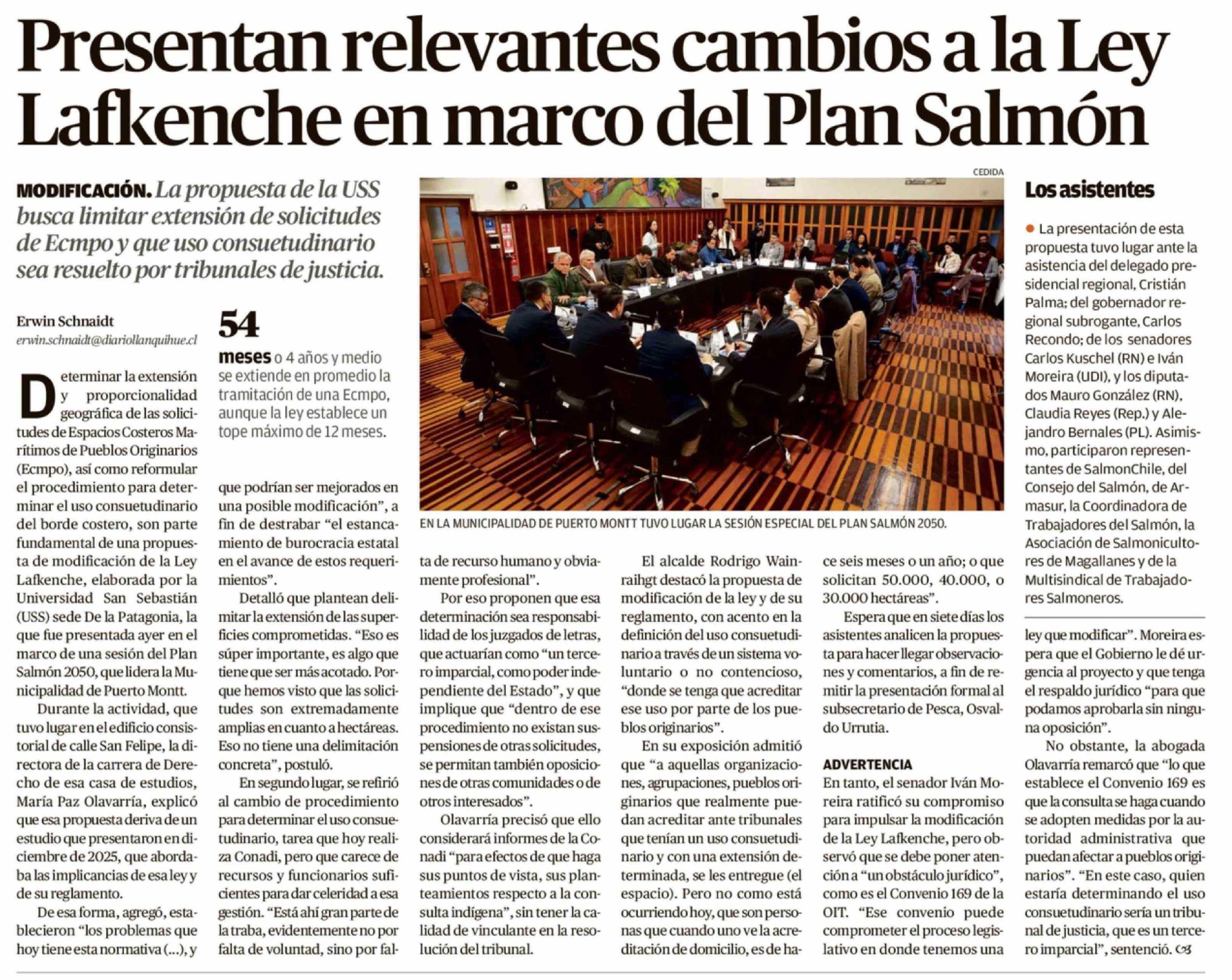 Presentan relevantes cambios a la Ley Lafkenche en marco del Plan Salmón 11-04-2026 El Llanquihue |