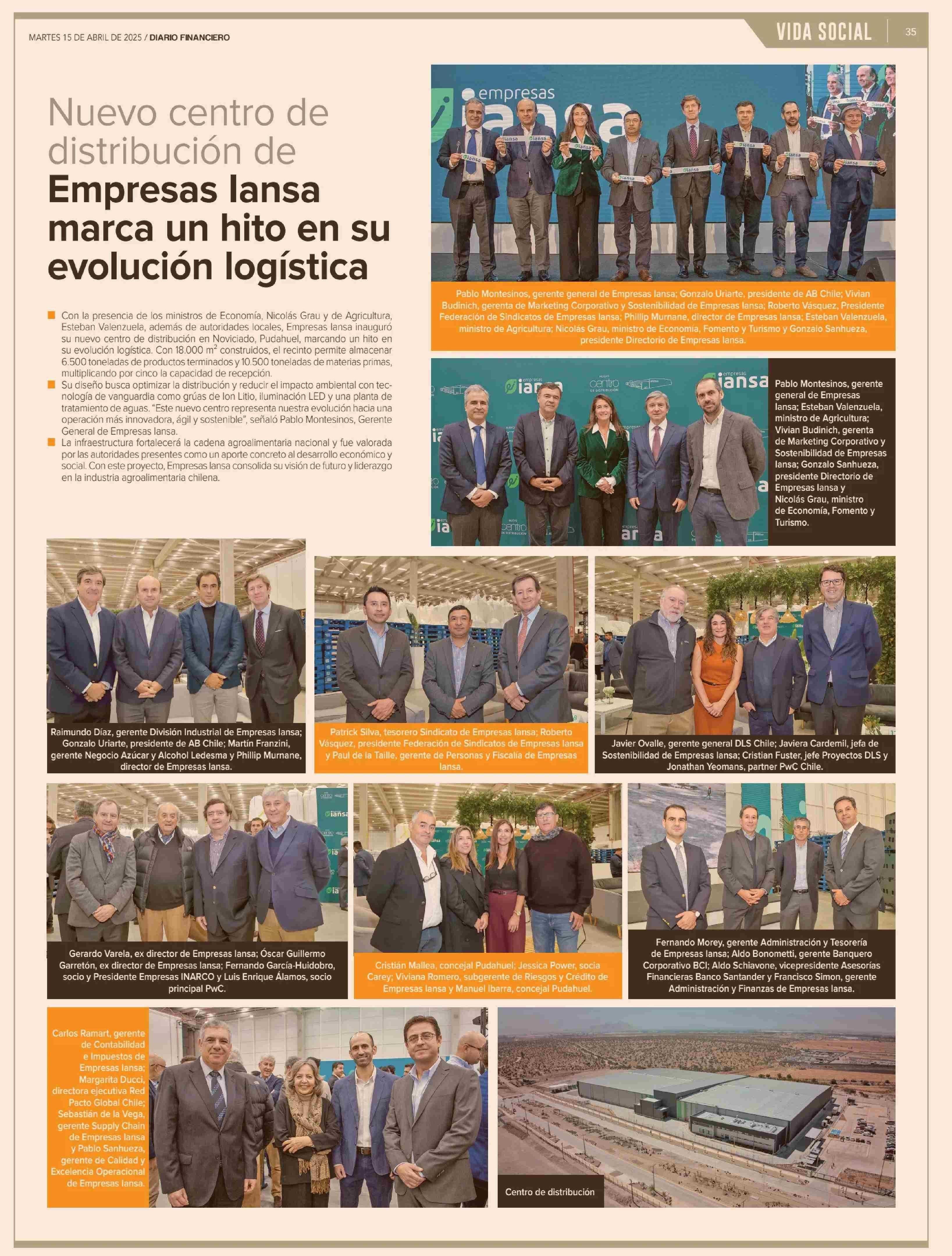 Nuevo centro de distribución de Empresas lansa marca un hito en su evolución logística 15-04-2025 Diario Financiero |