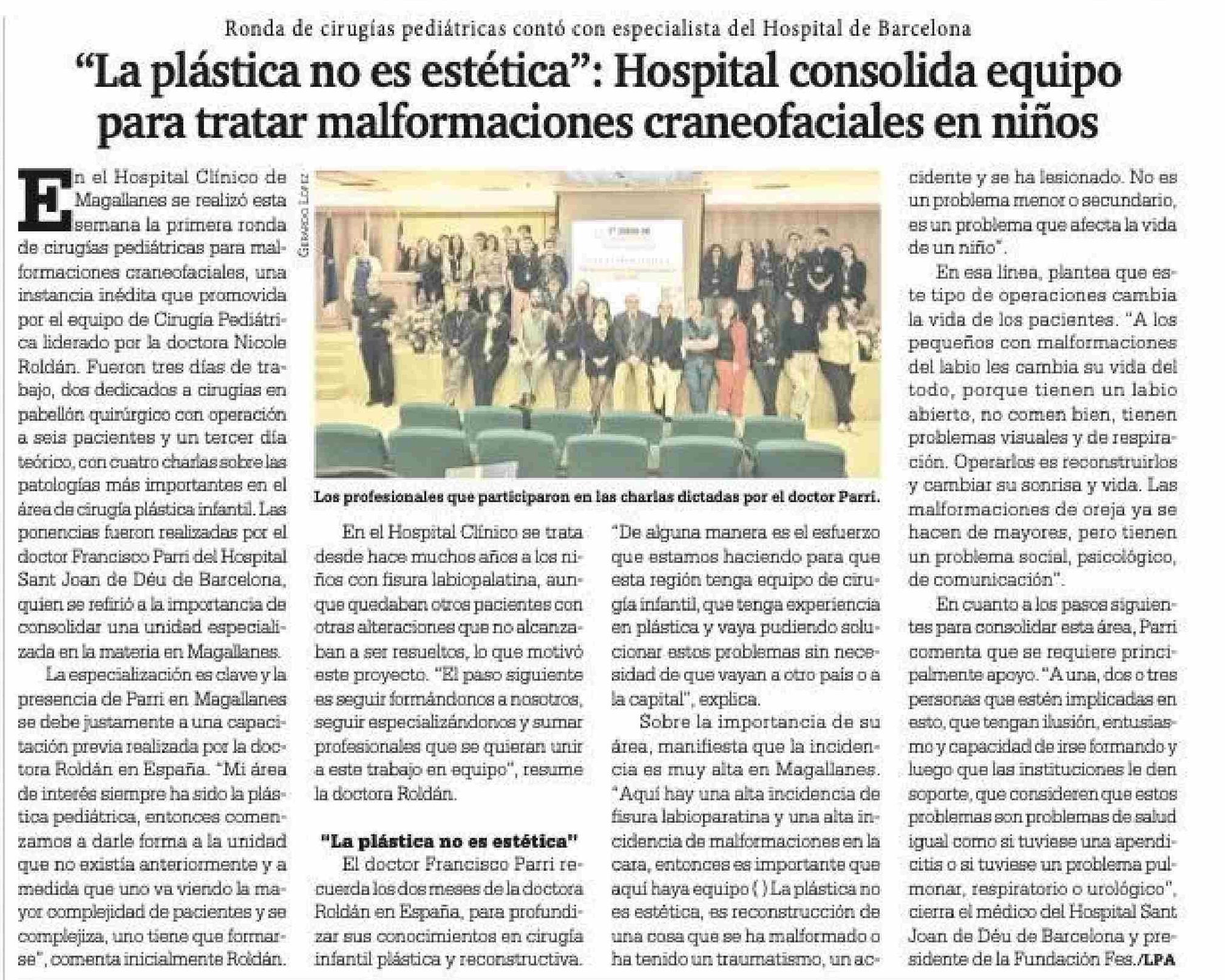 “La plástica no es estética”: Hospital consolida equipo para tratar malformaciones craneofaciales en niños 06-06-2025 La Prensa Austral |